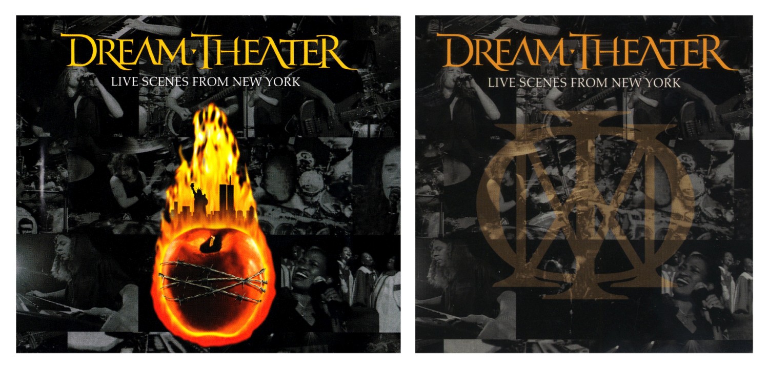 Dream Theater's album Live Scenes From New York * was released on 11 September 2001, the day the attacks took place. Its original cover depicted the Big Apple with the Statue of Liberty and the Twin Towers on fire. They changed the cover afterwards. An album titled "Live Scenes From New York" on the exact day the Twin Towers are destroyed killing thousands? By a band called "Dream Theater" when everybody was in shock and awe? With the Big Apple bound by barbed wire while the president of the US called it an attack on liberty?