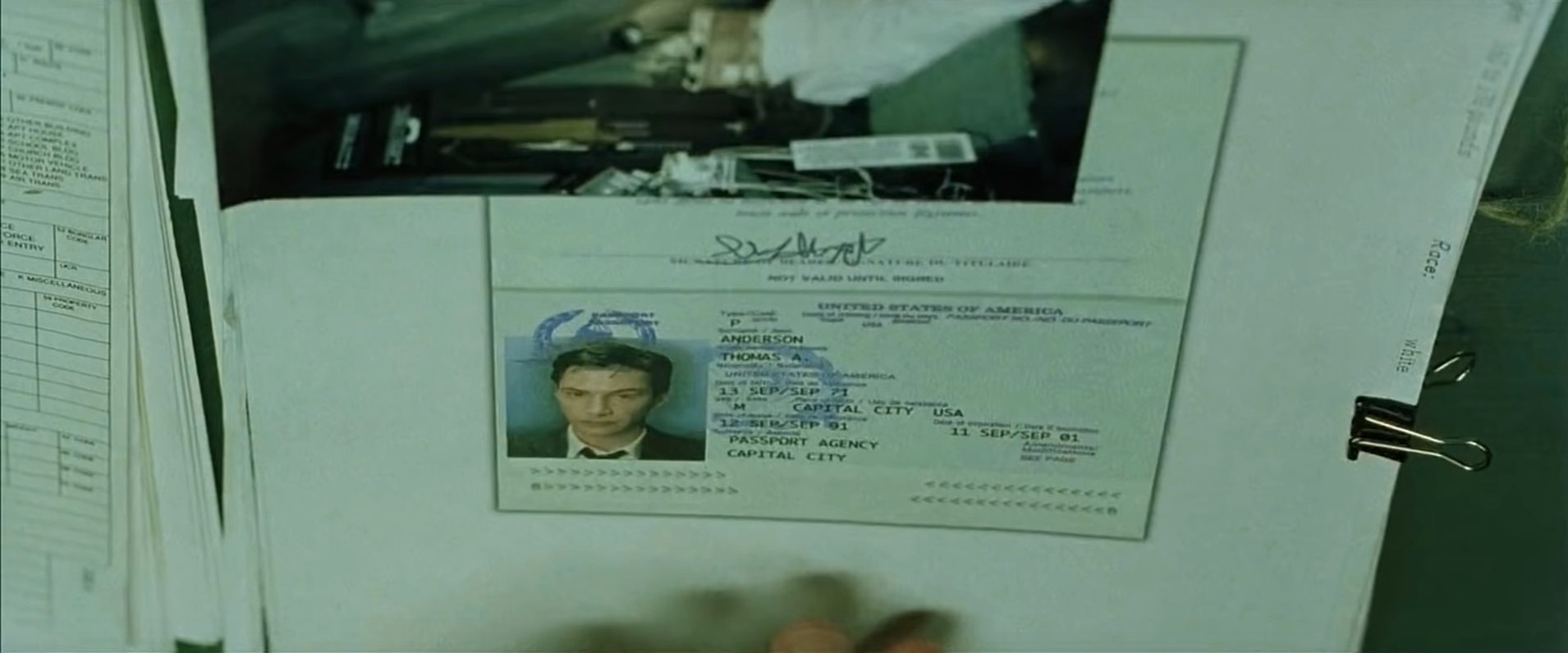 Neo's passport contains some interesting information. Date of birth is 13 September 1971. Date of issuance is 12 September 1991. Date of expiration is 11 September 2001. This might symbolize a count down, 3-2-1... The passport also contains the place of birth as "Capital City USA". New York was the first capital of the USA and the most important city ever since. The attack on New York was a very symbolic attack, an attack at the heart of the United States.