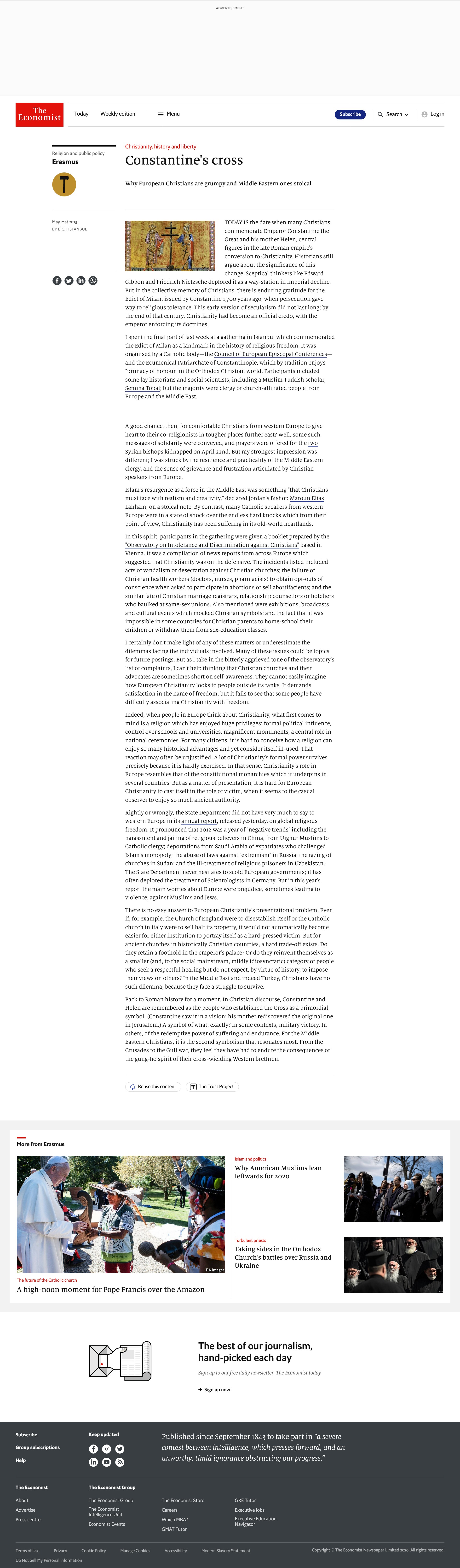 The Economist reported thatConstantine and Helen are remembered as the people who established the Cross as a primordial symbol.** The cross as we know it today in Christianity was an invention by pagan Roman emperor Constantine who played an important role in the history of the Catholic Church.