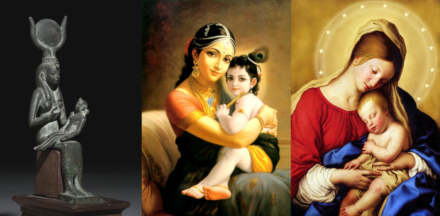 In Hinduism the mother of god is represented by Yashoda. Krishna, the Golden Child, points to sun worship again. Krishna was born on earth to destroy sin. What a coincidence!So they forsook YHWH and served Ba'al and the Ashtoreths.(Judges 2:13). The myth of the mother goddess is of course deeply pagan. God forewarned the world for these ungodly practices. Ba'al is often linked to Satan. Ashtoreth or Asherah is a mother goddess who appears in a number of ancient sources. Astarte, Ishtar, Isis, Aphrodite, Inanna, Venus, Mary. All trace back to pagan Babylonian and Mesopotamian myths.