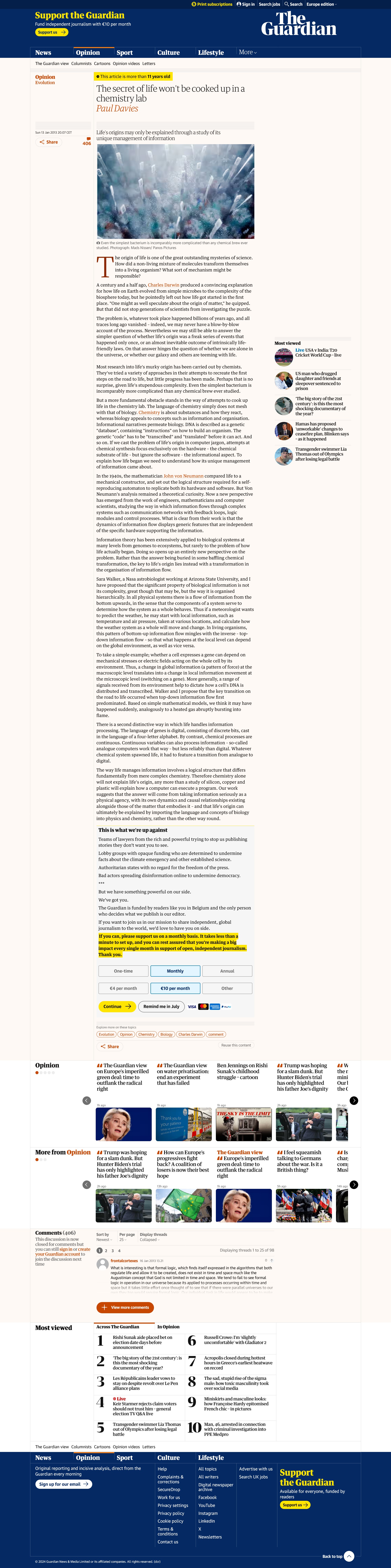 Paul Davies - The secret of life won't be cooked up in a chemistry lab