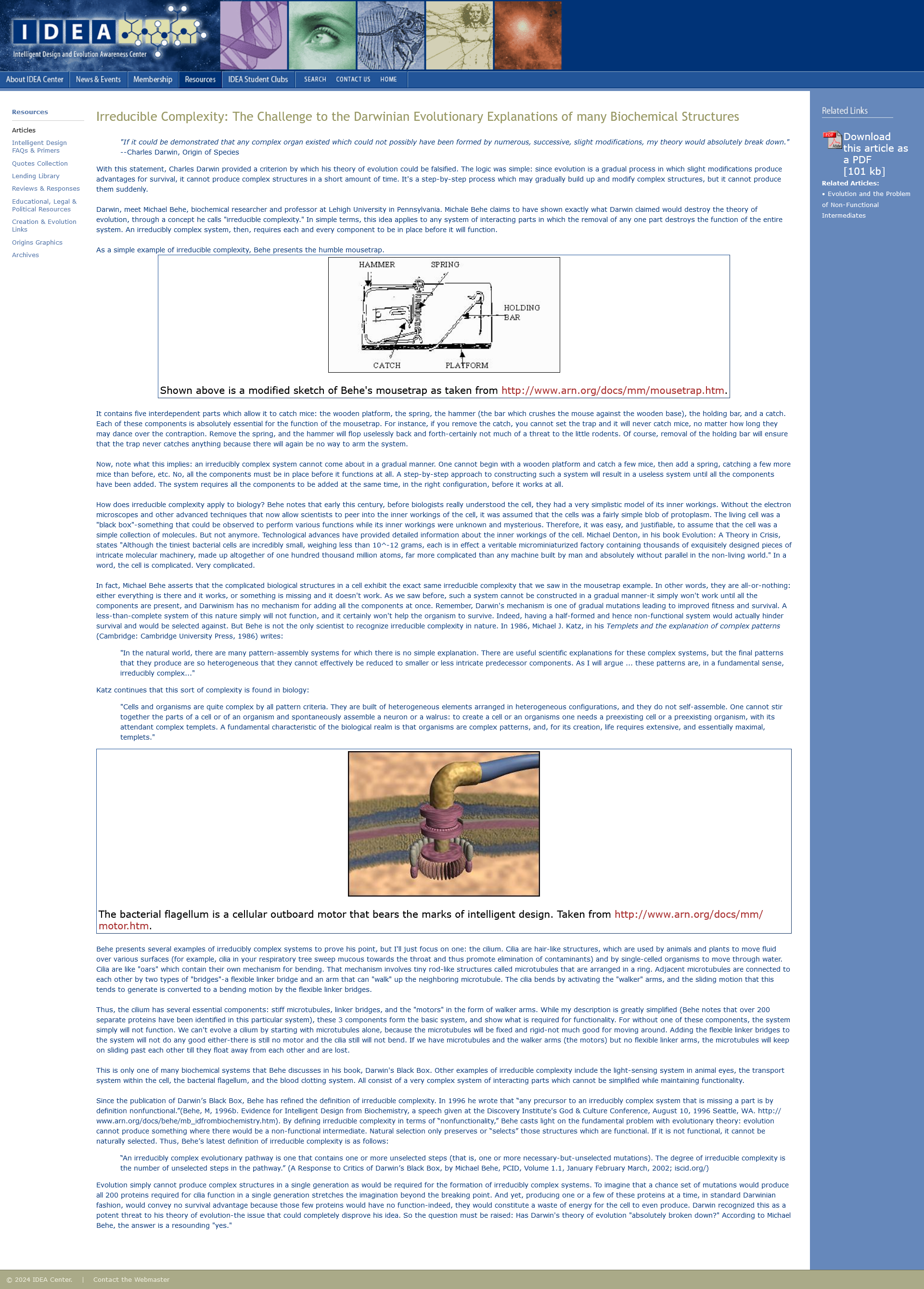 Specified complexity is more than just complexity. A cell is irreducibly complex which means that it won't function if any of its many complex subparts is not present and in its proper specific organization. Even a small step in the process towards such an incredibly complex cell, like the necessity of 20 amino acids in exactly the right order, is calledone of the mysteries surrounding the evolution of life.** Specified information, like DNA or RNA, is useless without the translation and copying machinery inside a cell.