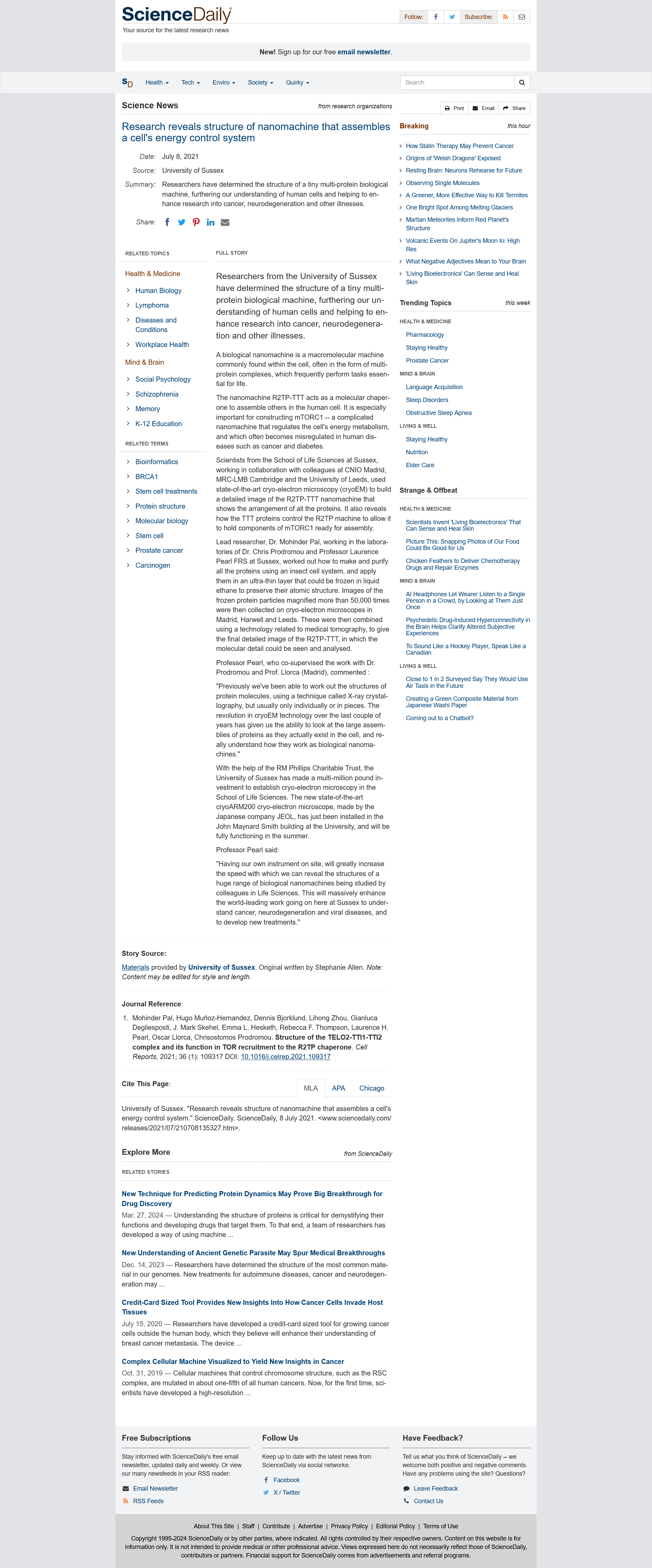 We have always underestimated cells. Undoubtedly we still do today. But at least we are no longer as naive as we were when I was a graduate student in the 1960s. ... Indeed, the entire cell can be viewed as a factory that contains an elaborate network of interlocking assembly lines, each of which is composed of a set of large protein machines.*