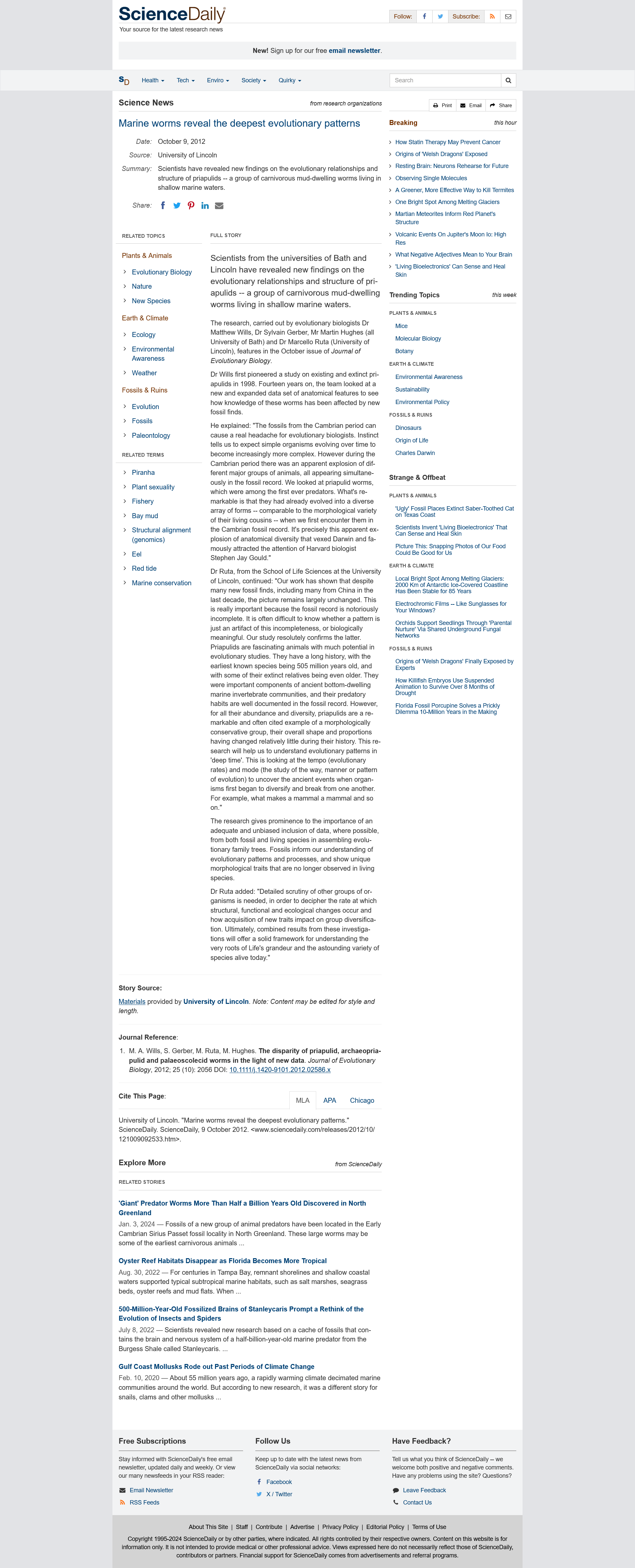 Matthew Wills - University of Lincoln: Marine worms reveal the deepest evolutionary patterns