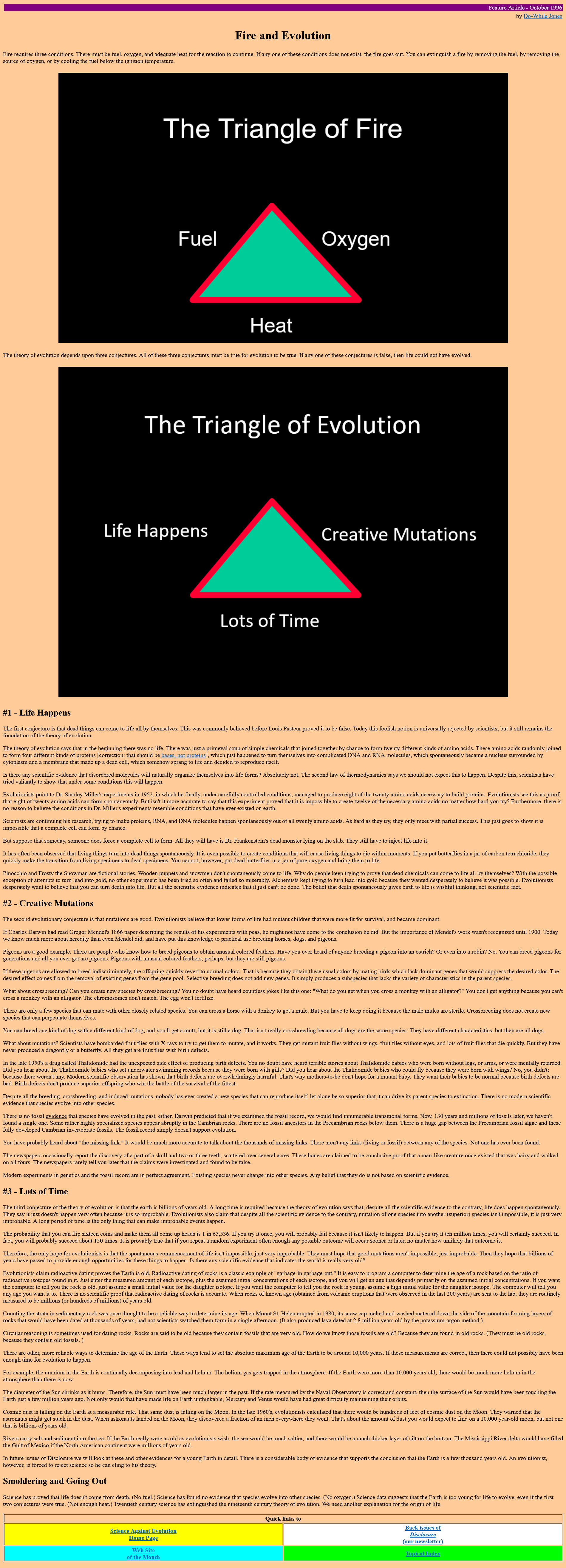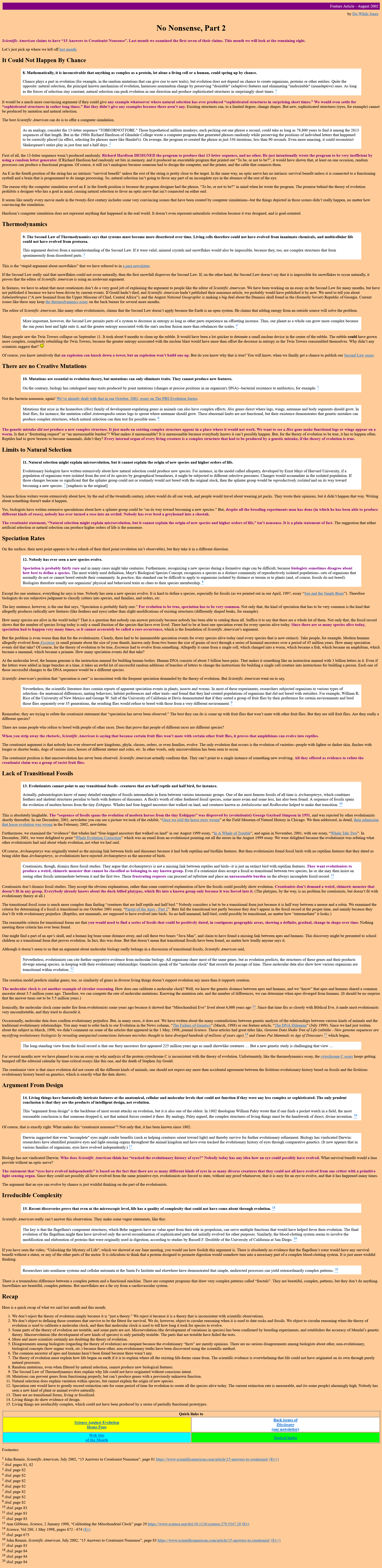 Scientists have bombarded fruit flies with X-rays to try to get them to mutate, and it works. They get mutant fruit flies without wings, fruit flies without eyes, and lots of fruit flies that die quickly. But they have never produced a dragonfly or a butterfly. All they get are fruit flies with birth defects.*