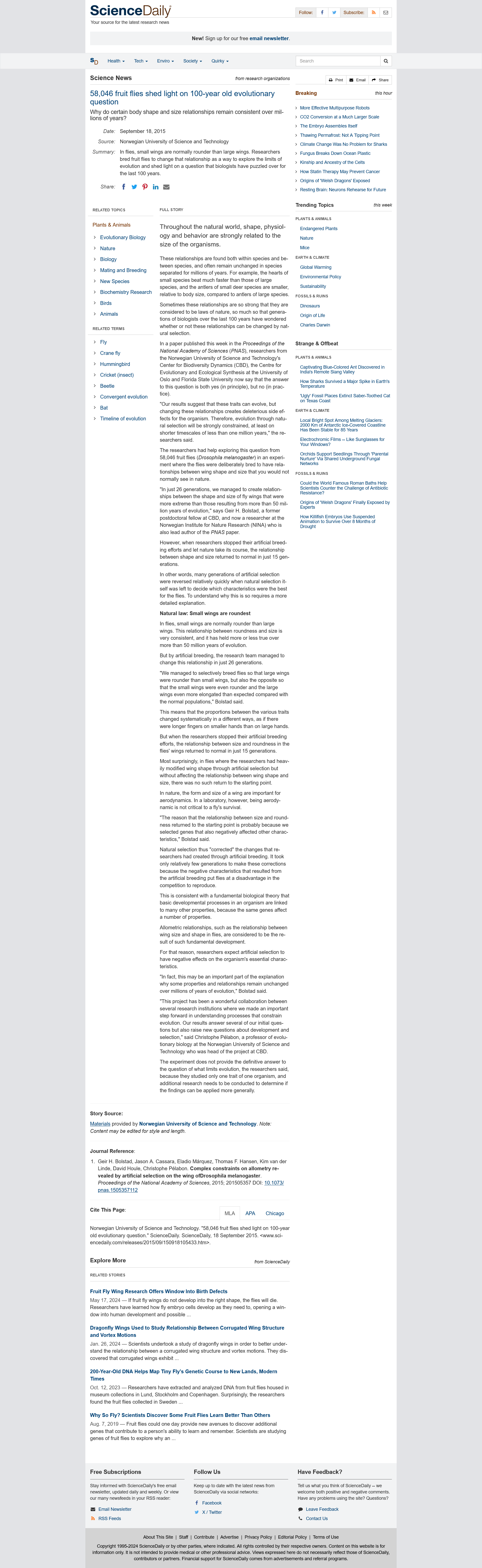 Norwegian University of Science and Technology - 58,046 fruit flies shed light on 100-year old evolutionary question