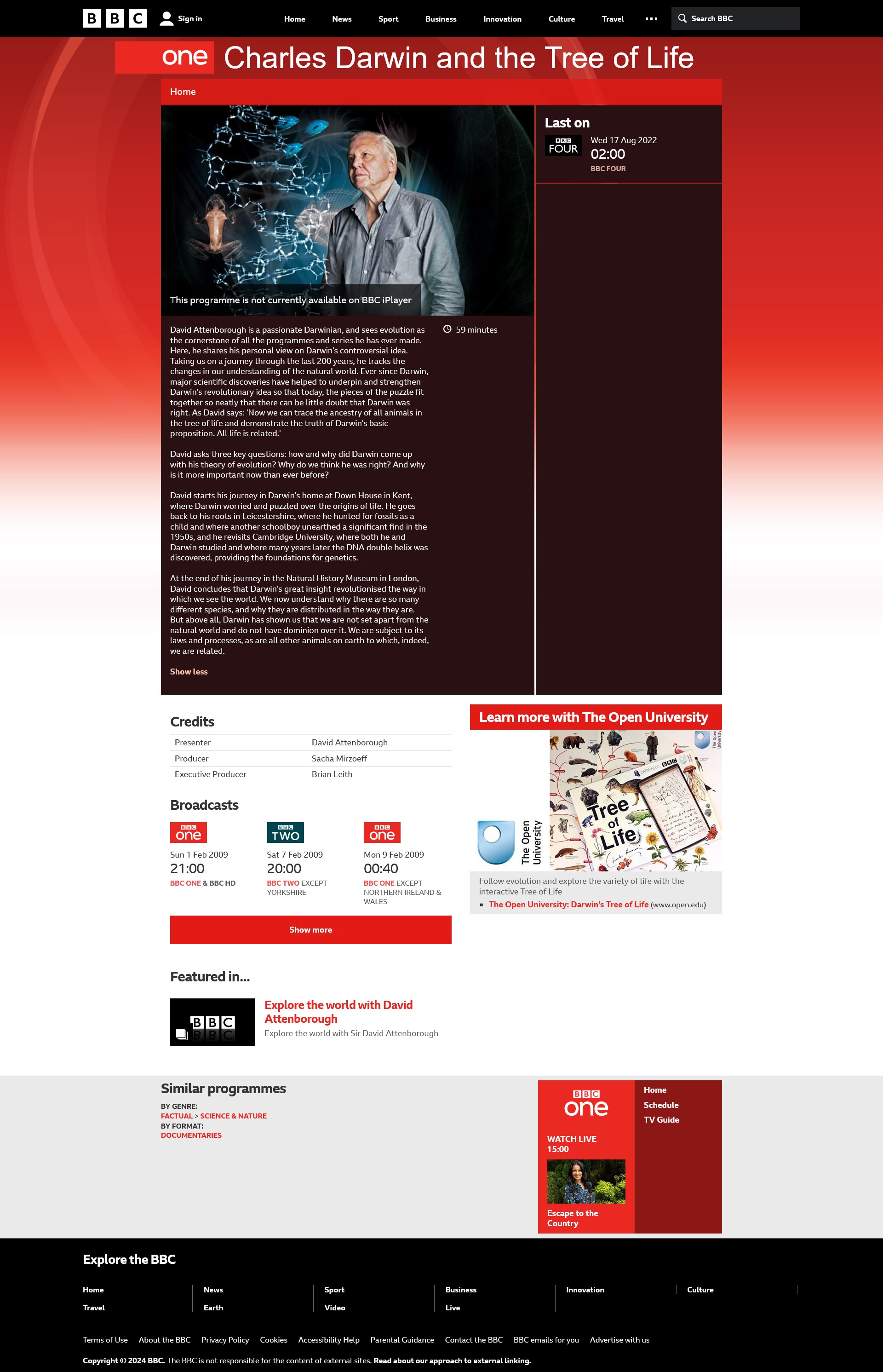Sir David Frederick Attenborough is an English broadcaster and naturalist. ... He has explained that he feels the evidence all over the planet clearly shows evolution to be the best way to explain the diversity of life. ... In 2002 Attenborough joined an effort by leading clerics and scientists to oppose the inclusion of creationism in the curriculum of UK state-funded independent schools.*