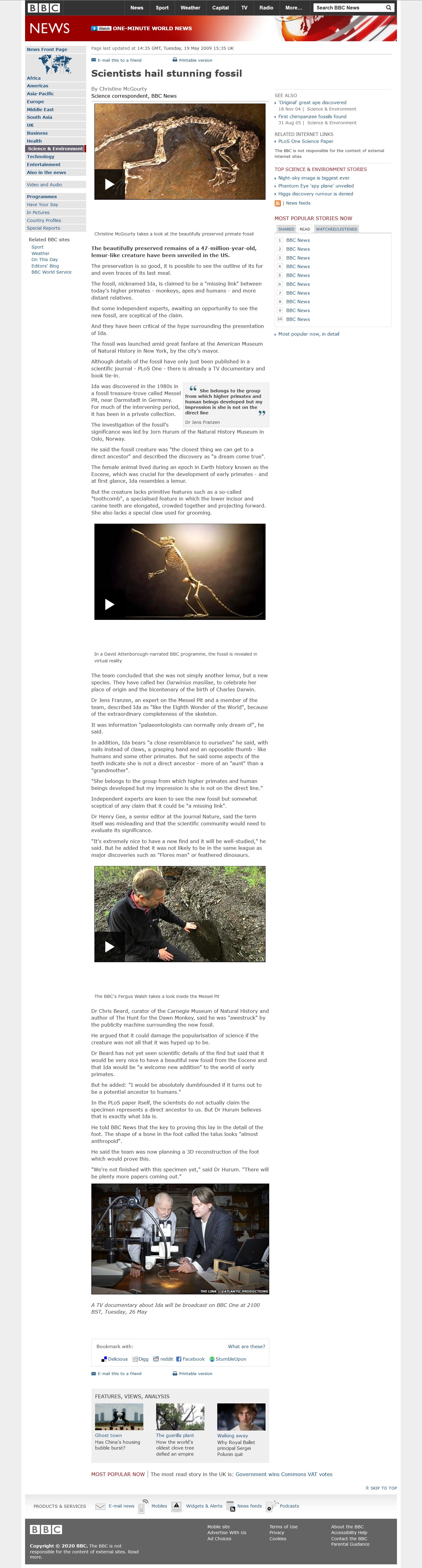 When I saw this photographs for the first time I couldn't sleep for two nights... Now we've got something that really tells us a part of our deep evolution just in the point where monkeys and apes are evolving, the group called haploid. And this is so deep down our own evolutionary tree that this will be the best specimen for many years for the understanding of it.