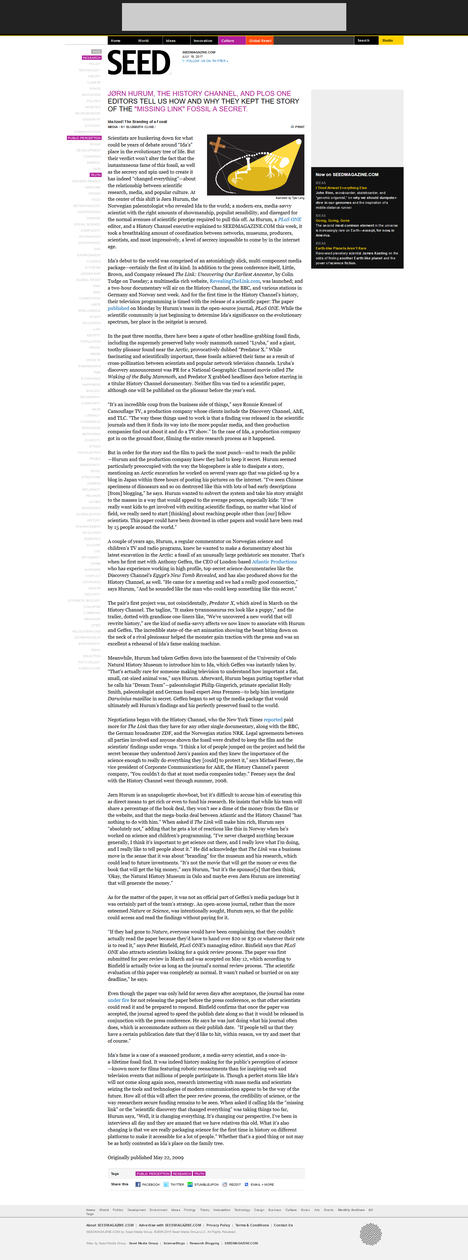SEED - Jørn Hurum, the History Channel, and PLoS ONE