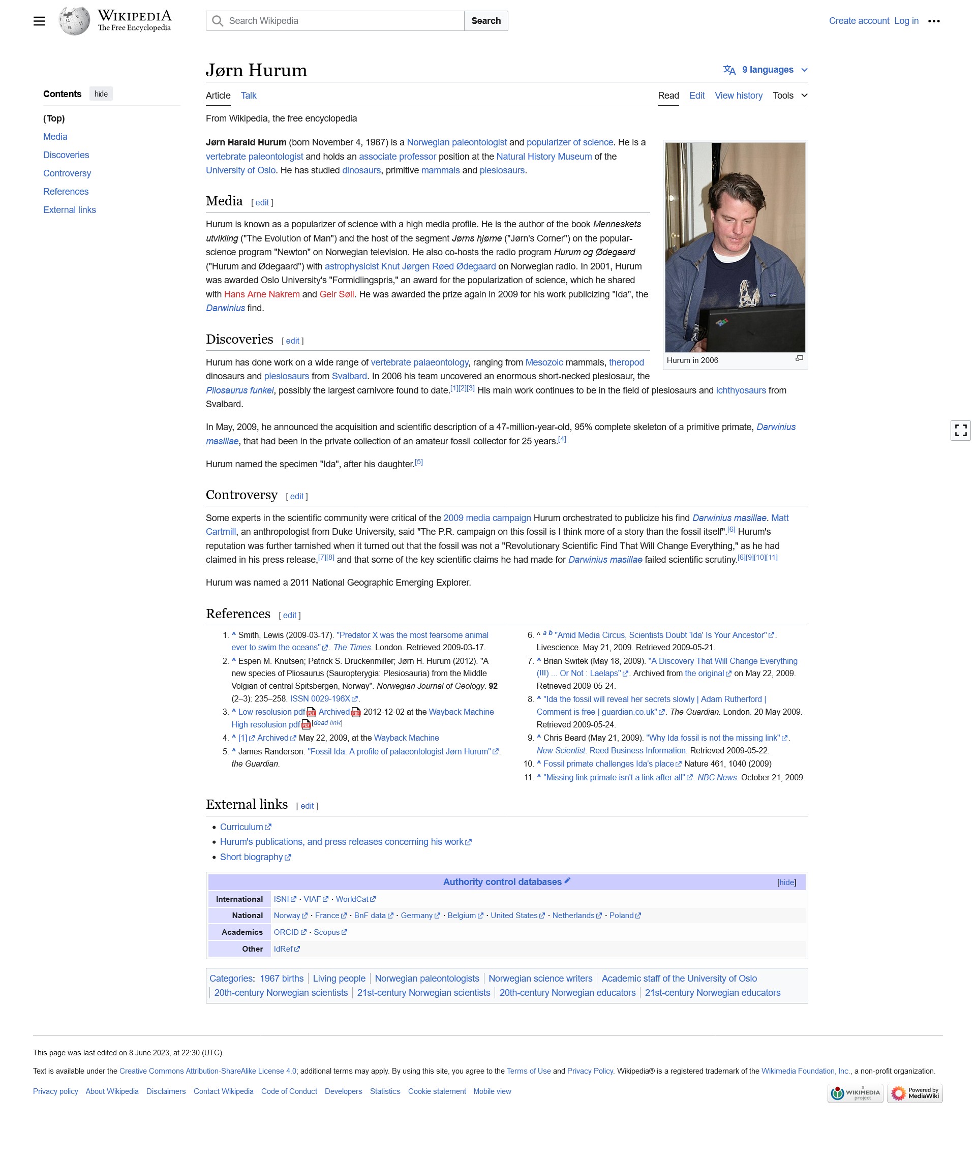 Jørn Hurum is the evolution crackpot who discovered and popularized Ida...