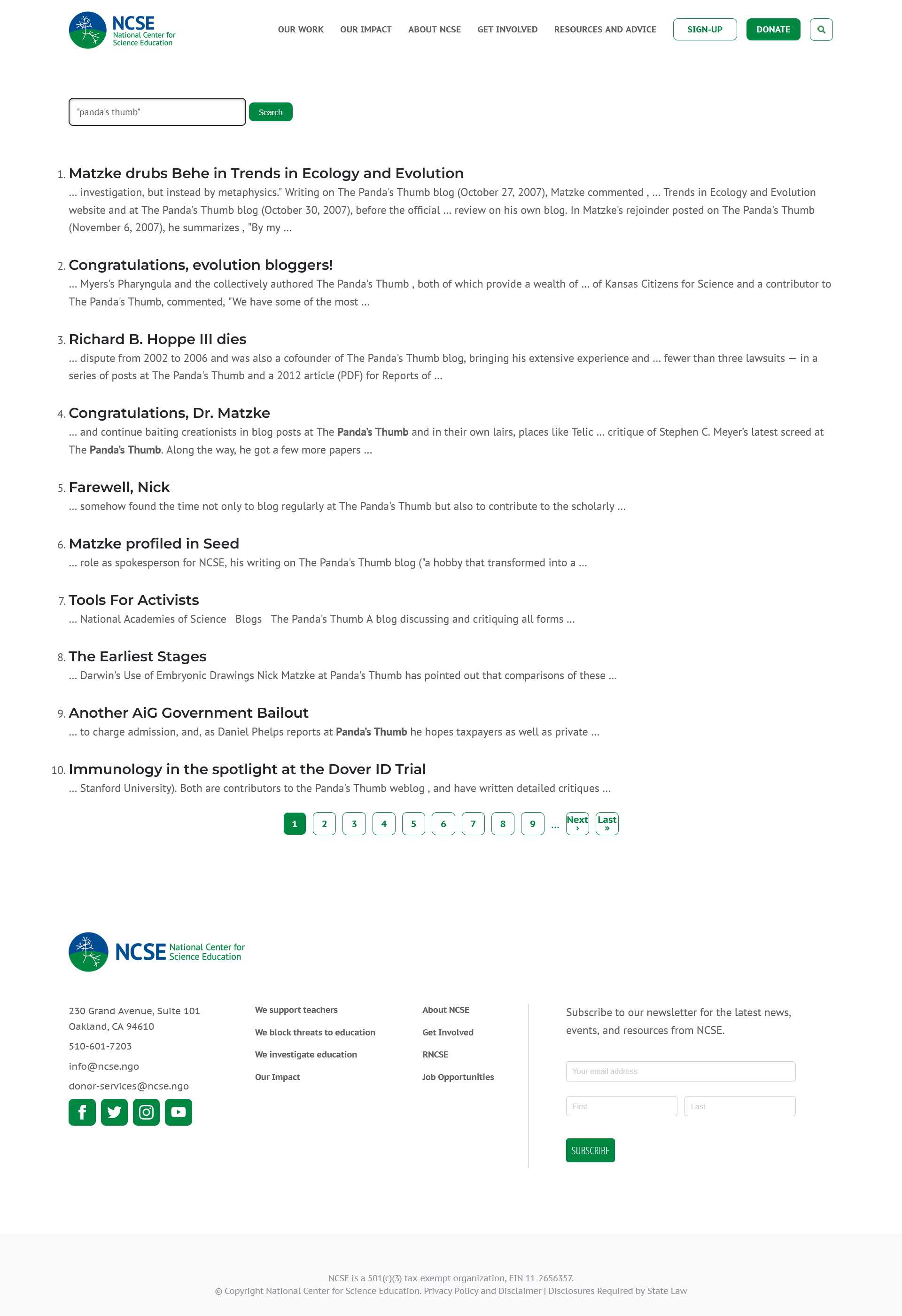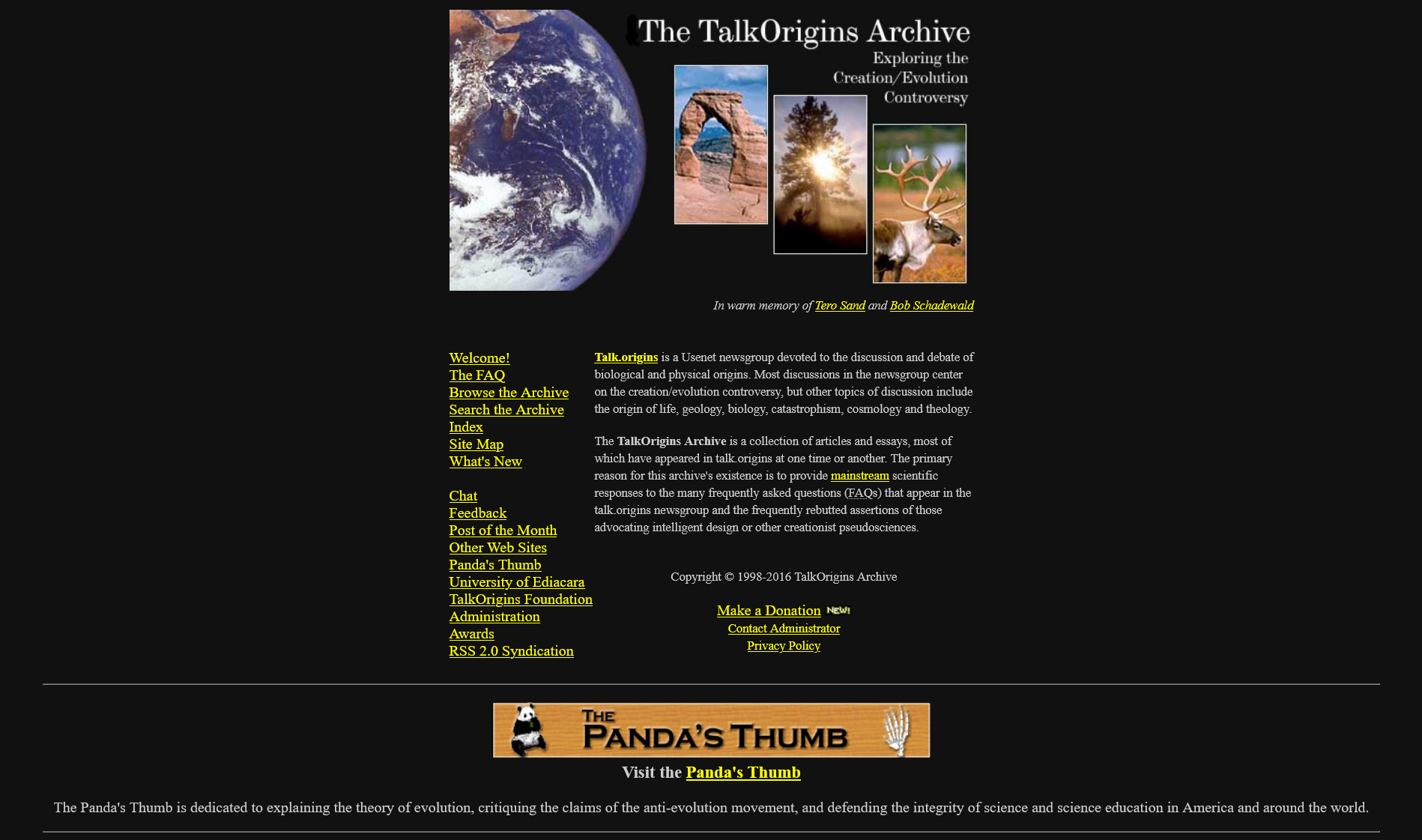 Organizations like Talk.Origins and Panda's Thumb serve as an extension of mainstream science for propagandizing and popularizing evolution theory. NCSE mentions Talk.Origins extensively on its own website in order to support its articles, see for example NCSE search: "Talk.Origins"* or NCSE search: "Panda's Thumb"*. Birds of a feather flock together.