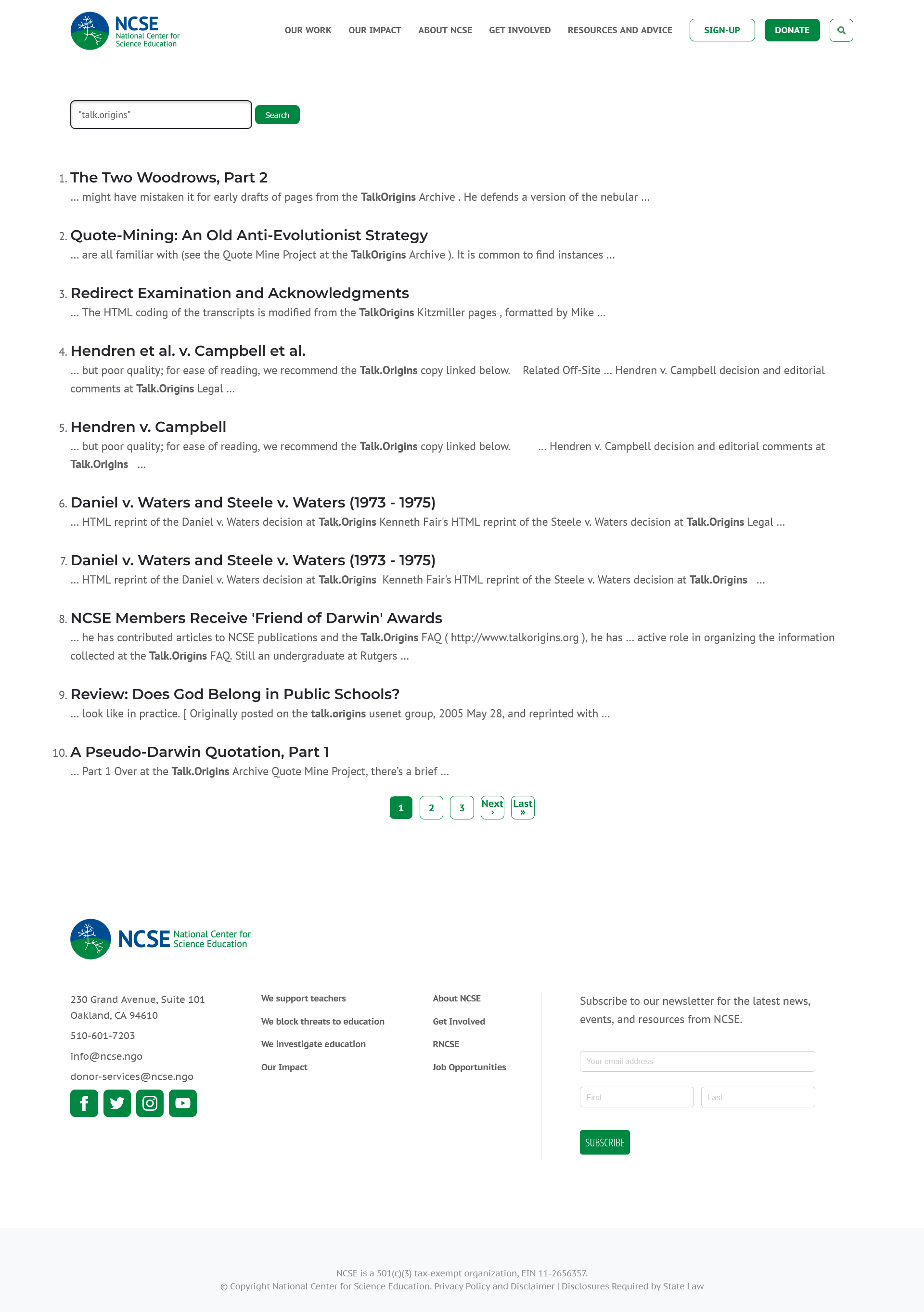 Obviously, NCSE is a powerful mainstream science friend of Talk.Origins.