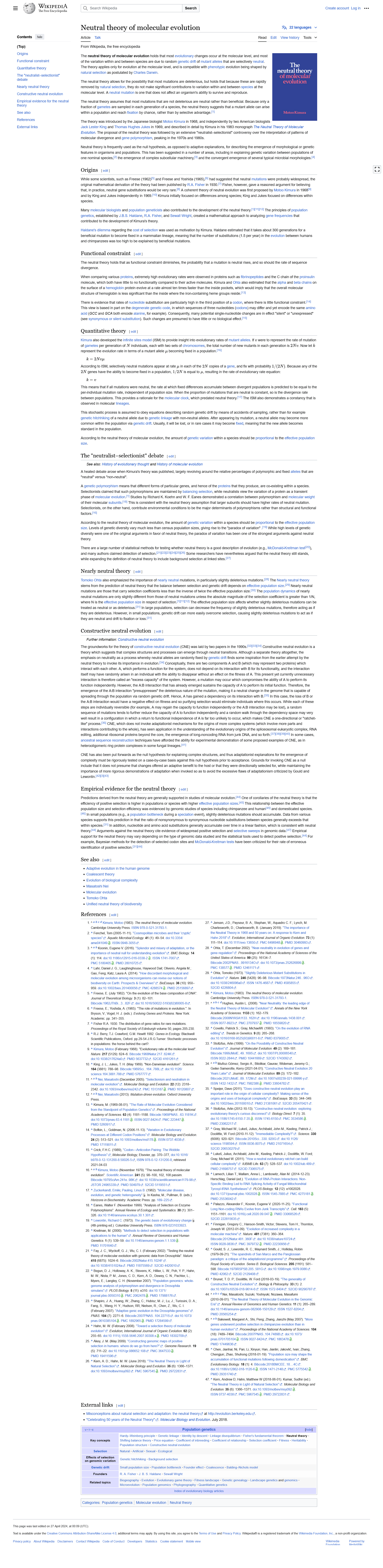 most mutations are deleterious, but holds that because these are rapidly removed by natural selection, they do not make significant contributions to variation within and between species at the molecular level. A neutral mutation is one that does not affect an organism's ability to survive and reproduce. The neutral theory assumes that most mutations that are not deleterious are neutral rather than beneficial.*