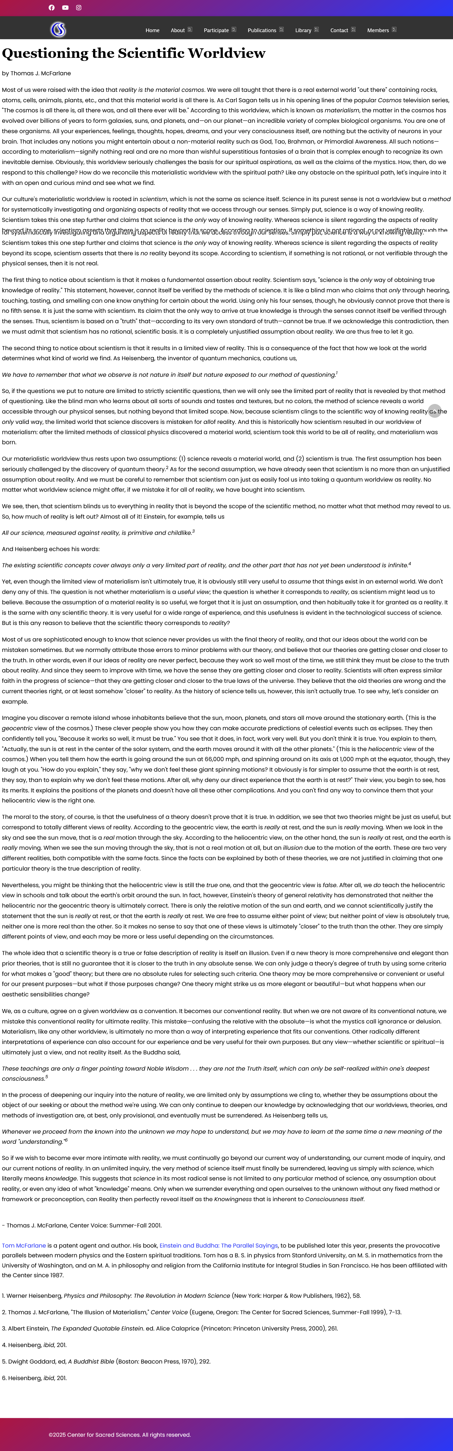Thomas J. McFarlane - Questioning the Scientific Worldview *
