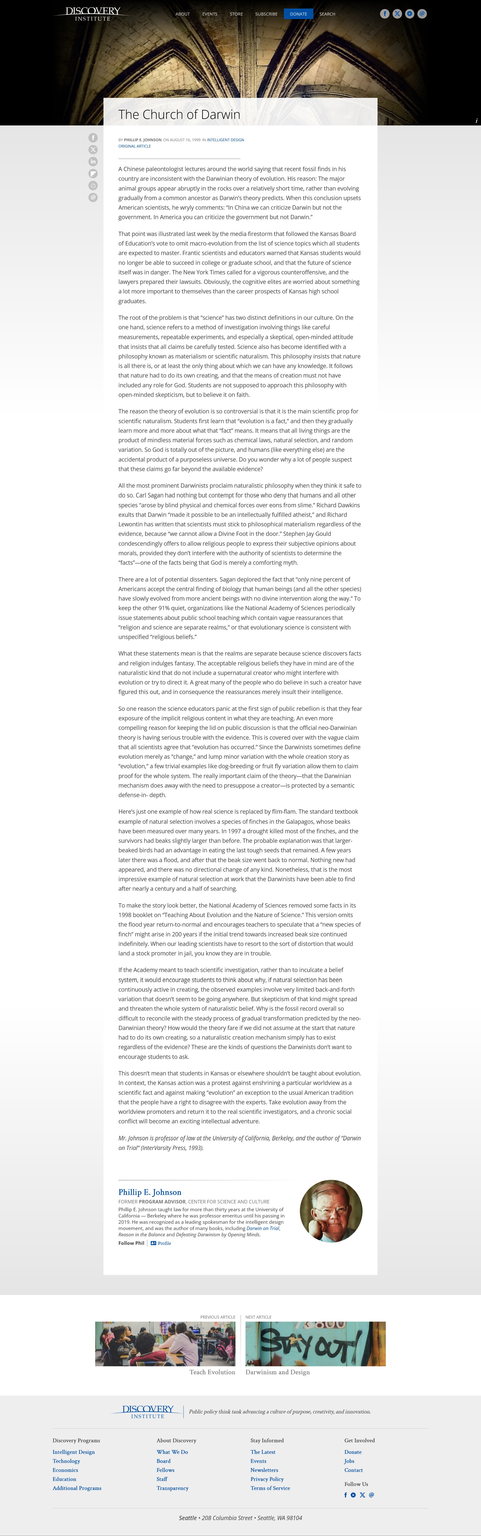The National Academy of Sciences, or NAS, is another bastion of evolution...