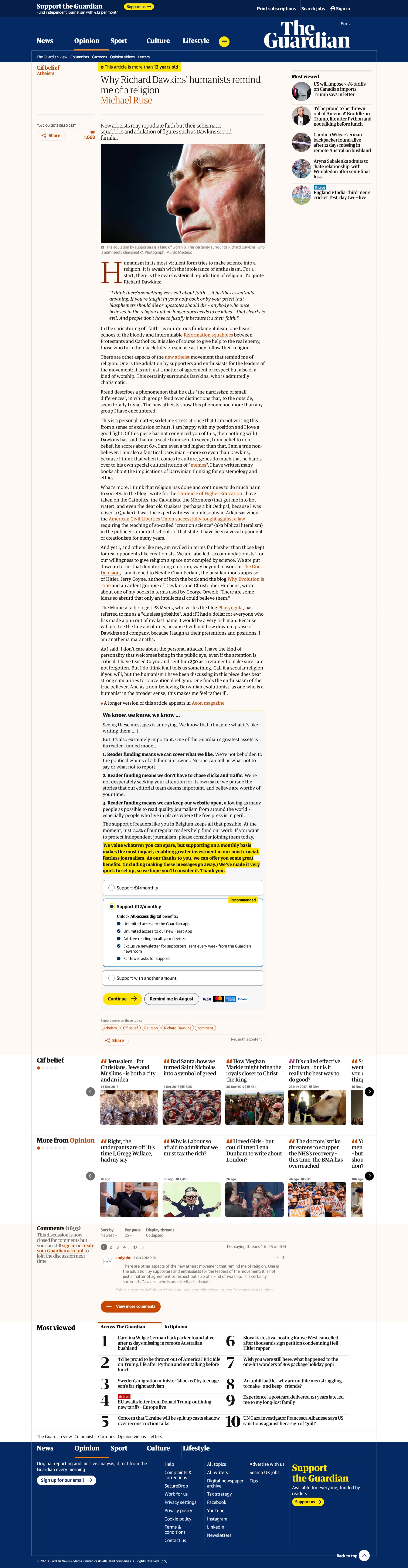 Michael Ruse - Why Richard Dawkins' humanists remind me of a religion *