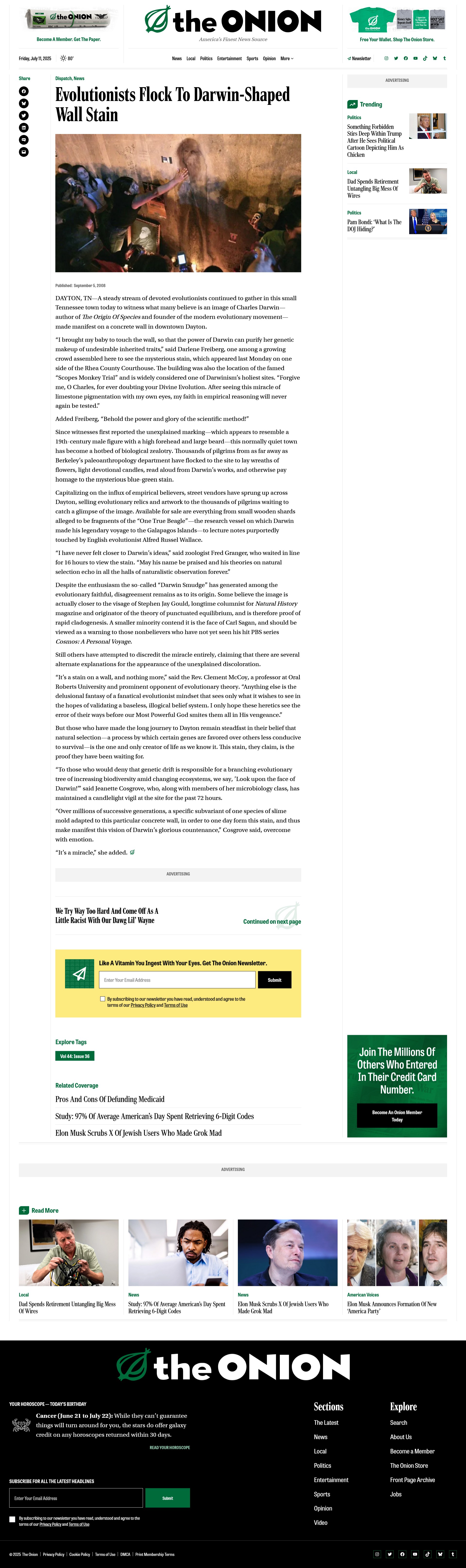 Onion - Evolutionists Flock To Darwin-Shaped Wall Stain *