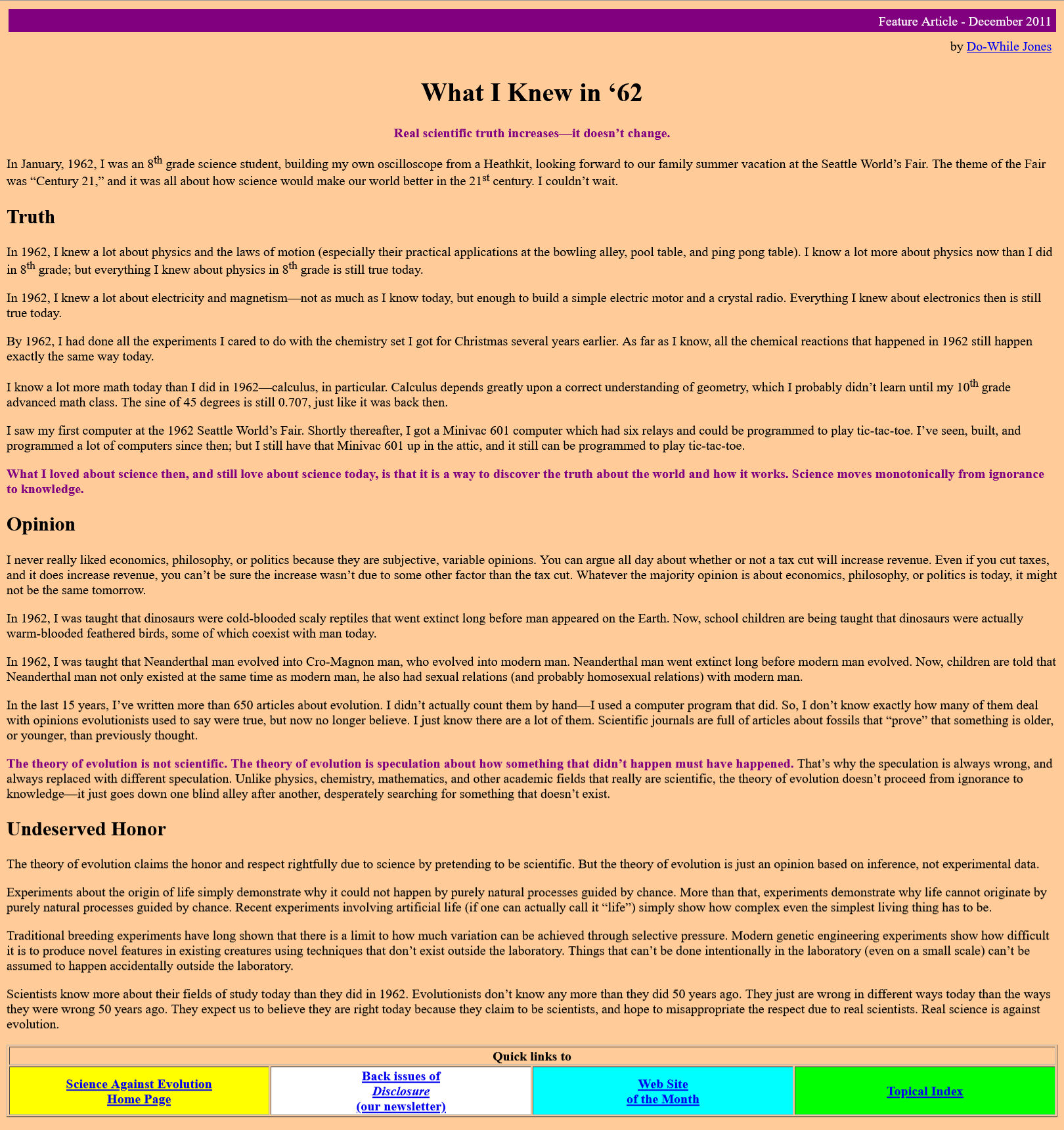 Evolutionists tend to scientism, the belief that science can prove everything and is the only way to truth and understanding. Like a religion. But science cannot prove itself. Many popular mainstream evolutionists make statements like "philosophy is dead"* which itself is a philosophical statement. Such people perhaps know much about their field of science, but they know as good as nothing about the overarching philosophy of science. The philosophy naturalism narrows the mind of its practitioners to a point where they will even deny reality and true science in order to maintain their fanatic belief in it.