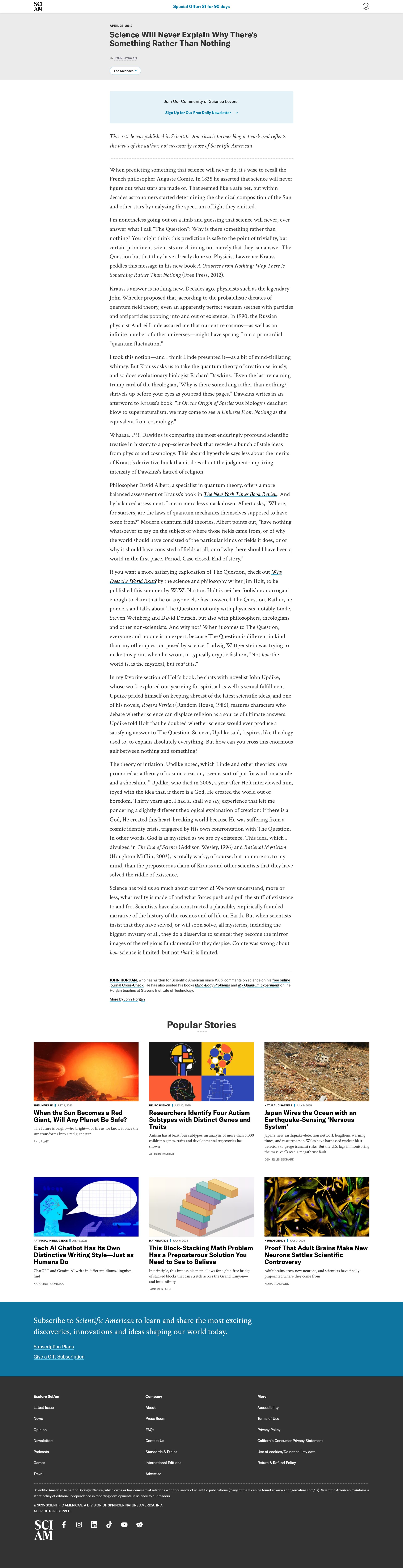 John Horgan - Science Will Never Explain Why There's Something Rather Than Nothing *