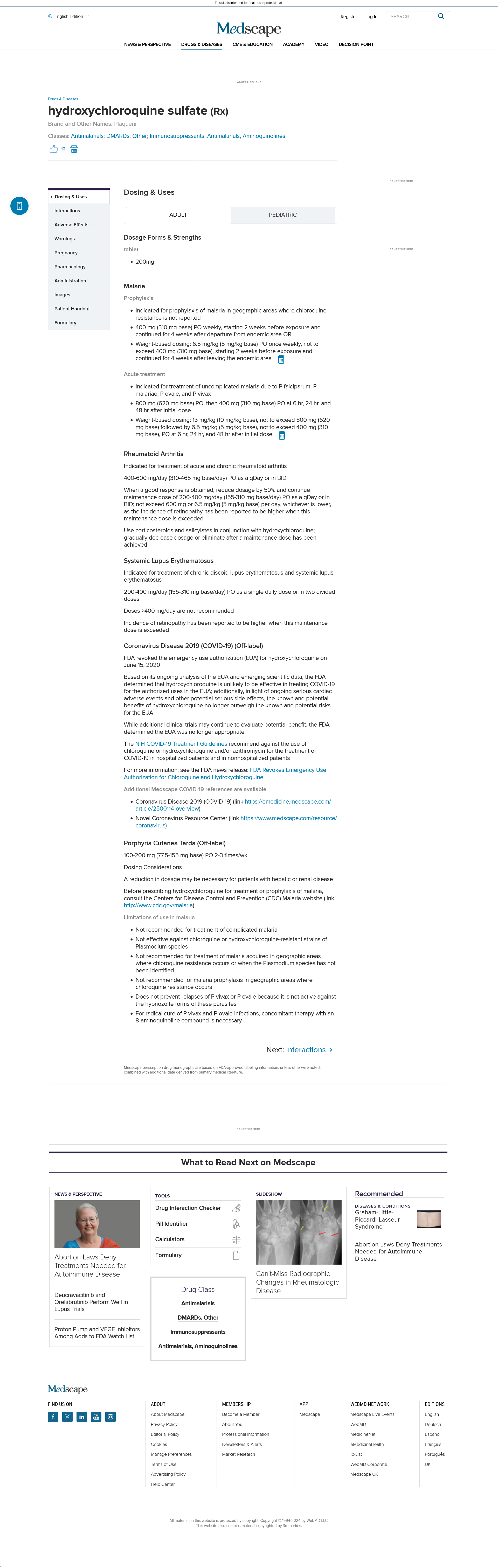 The protocol was designed to involve hundreds of potentially over-stressed hospitals in dozens of countries ... Hydroxychloroquine (oral): Hour 0, four tablets; Hour 6, four tablets; Hour 12, begin two tablets twice daily for 10 days. Each tablet contained 200mg Hydroxychloroquine sulphate (155mg base/tablet; a little-used alternative involved 155mg chloroquine base/tablet). ... Neither trial recorded dosage/kg, obesity...