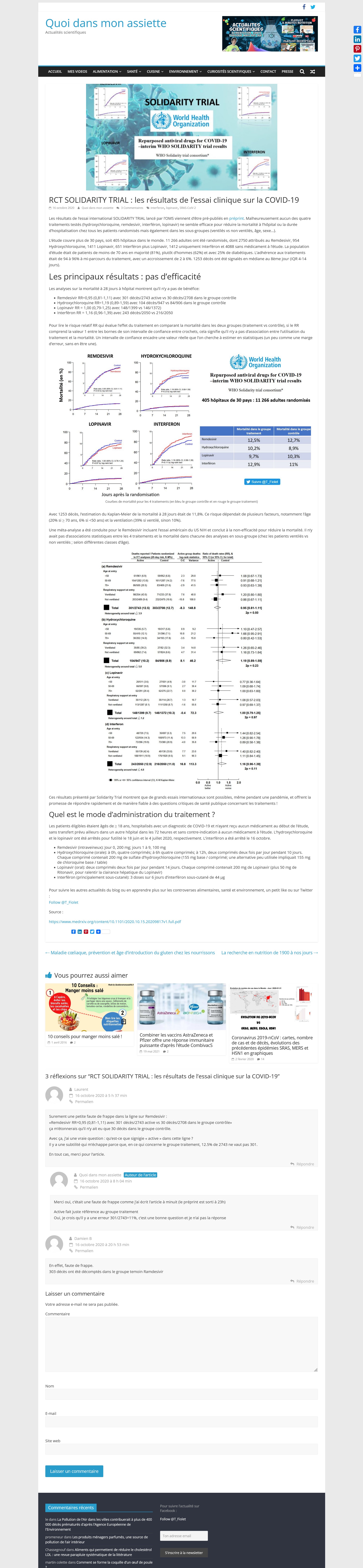 Picture is taken from an article on Thibault Fiolet's webpage*, the author of the negative meta-analysis mentioned earlier. The WHO did a study into HCQ as well, the so-called WHO Solidarity trial, it concluded...