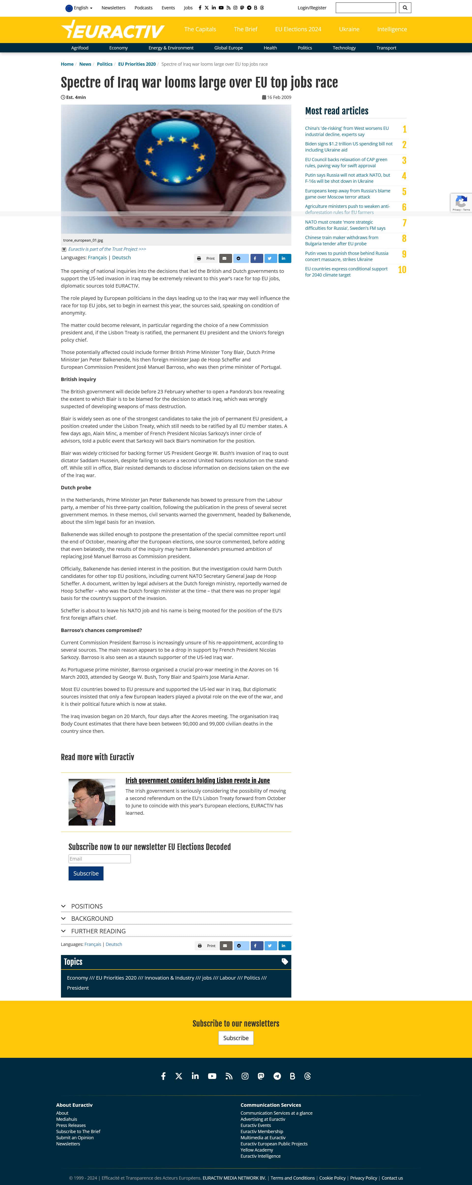 Euractiv - Spectre of Iraq war looms large over EU top jobs race