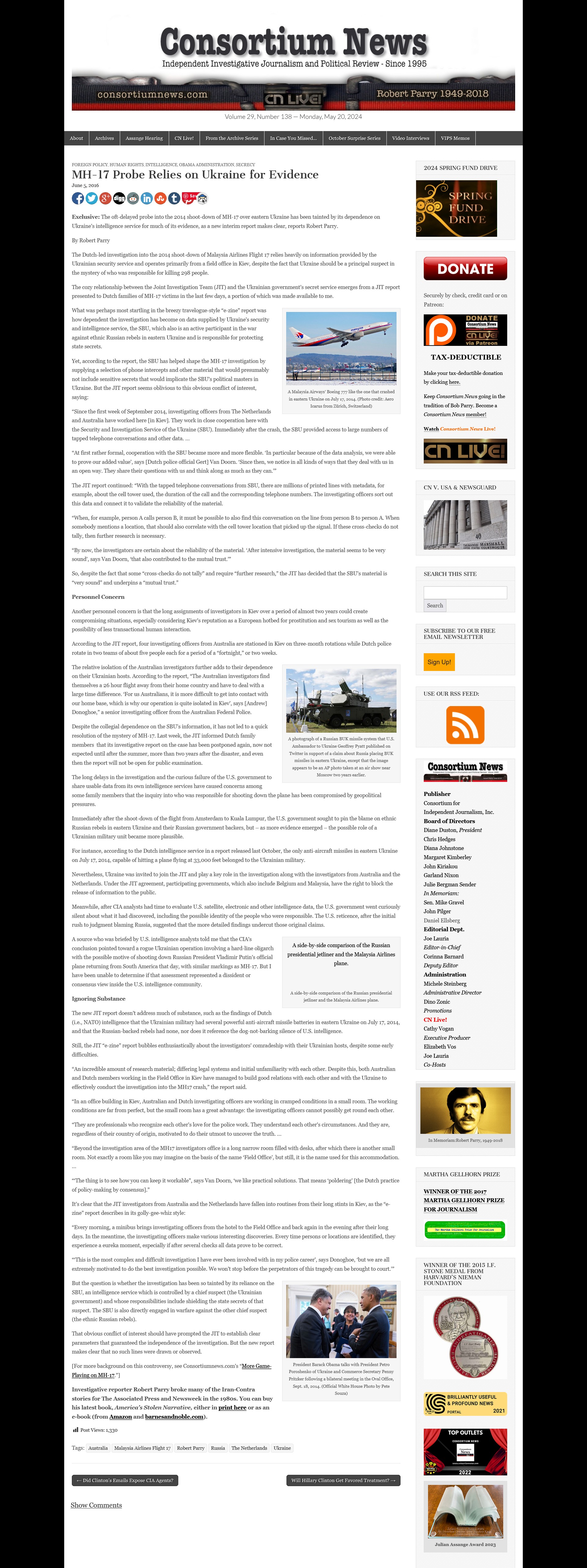 On 18 July Barack Obama said:The United States will offer whatever assistance we can to determine what happened and why.** But did "prince charming" speak the truth? Robert Parry noted...
