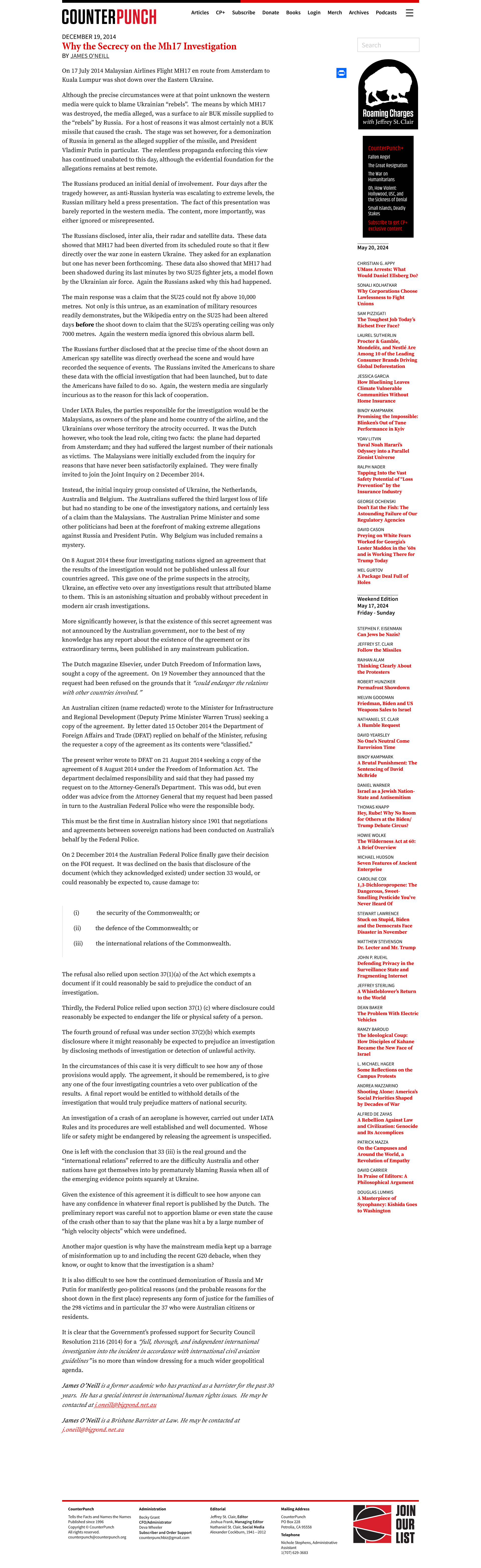 James O'Neill - Why the Secrecy on the Mh17 Investigation