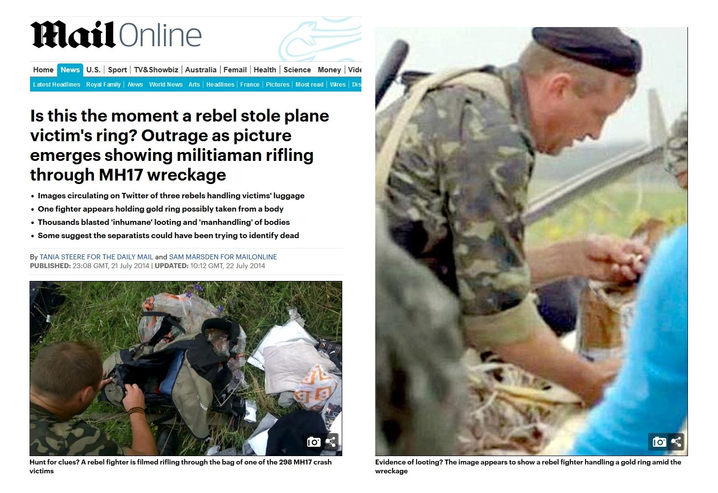 Another fact that was omitted from the western media is that pro-Russian separatists, called "Russian-led terrorists" by the west, fight against an illegal government in Kiev that was installed with help from the Anglo-American power elite who also supported the neo-Nazis in Ukraine. Their western media said things like:Carry-on bags and backpacks lay open, pillaged by looters.** andA photograph widely circulating on social media last night purported to show a Russian separatist fighter stealing a ring from a victim of the MH17 crash.*** But here's the truth about the events used to denigrate the separatists...