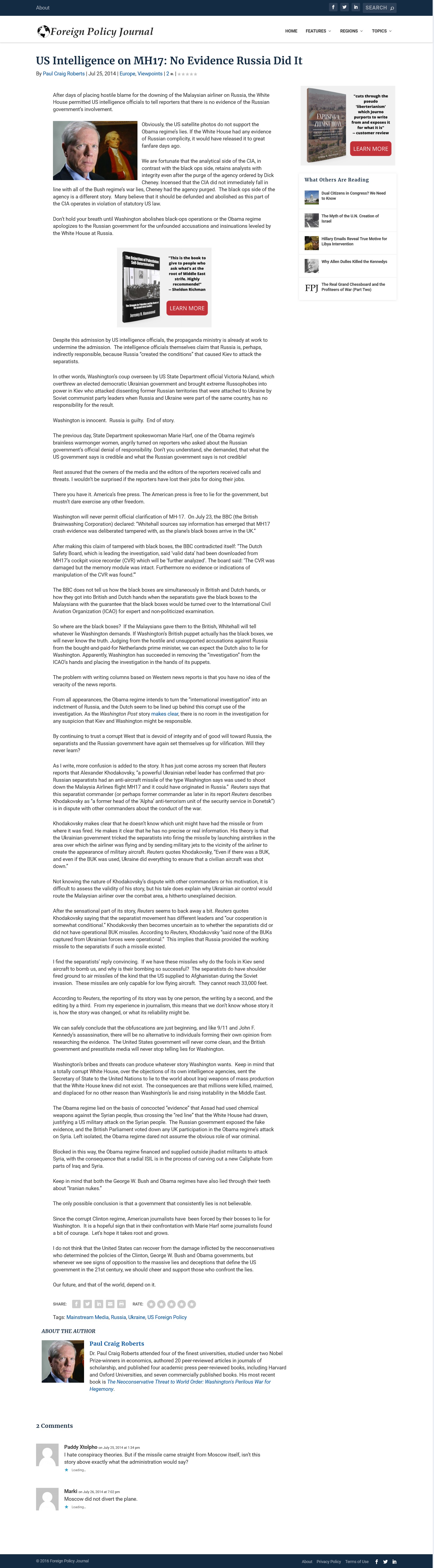 Paul Craig Roberts - US Intelligence on MH17: No Evidence Russia Did It