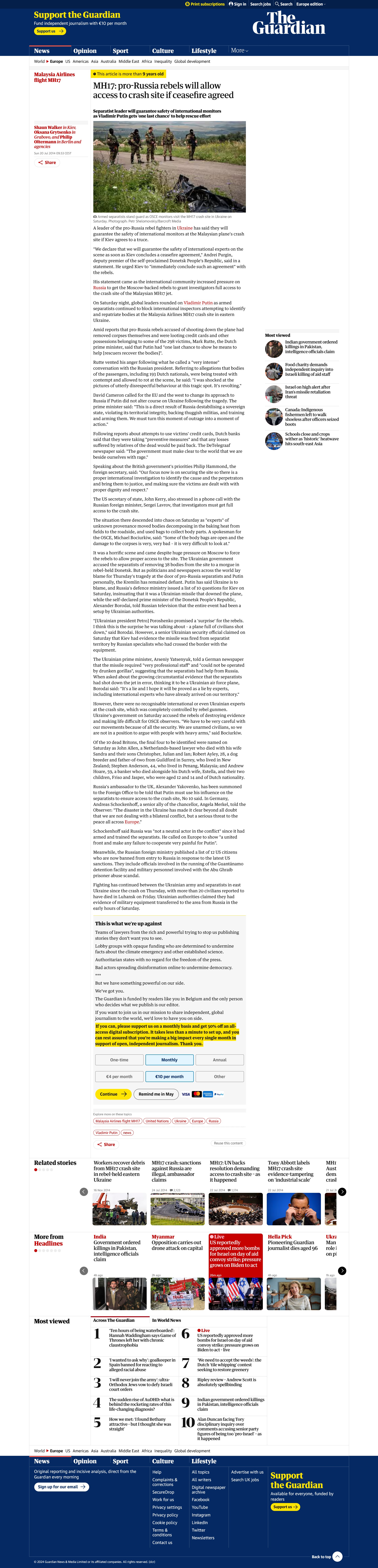 On 20 July 2014 we read that pro-Russian separatists wanted to cooperate and demanded a truce with Kiev before allowing access to the crash site on their territory.* This is sensible knowing that this is a warzone in control of the separatists, nobody would simply allow the enemy on its territory.