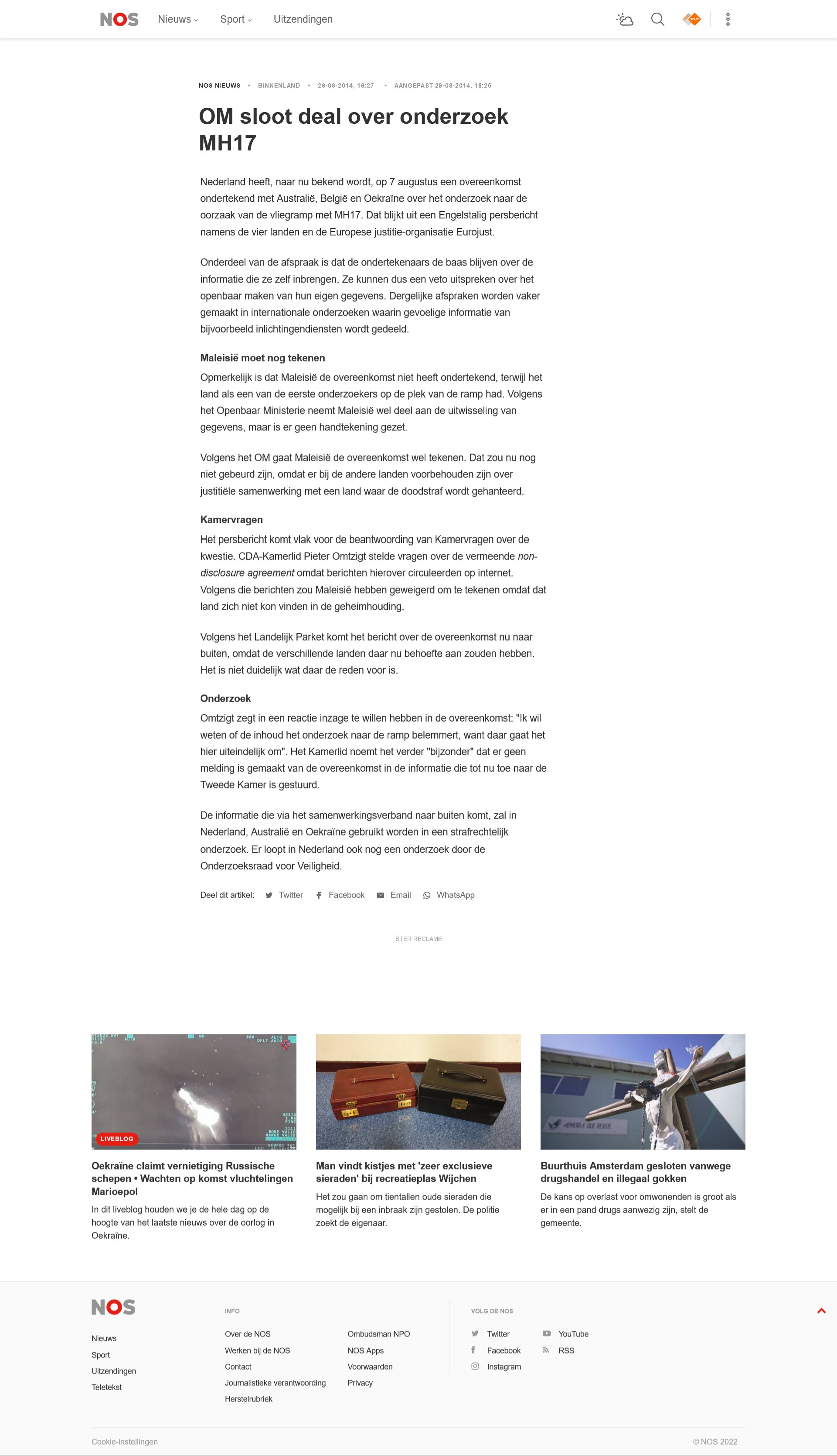 In the criminal investigation, the countries involved in the Joint Investigation Team (JIT) have entered into a partnership with the aim of uncovering the truth. They have agreed to work together and to exercise restraint with regard to the disclosure of information about the investigation. The government has no reason whatsoever to believe that the authorities in any of the countries affected is failing to honour these commitments. There is a great willingness to work together.*