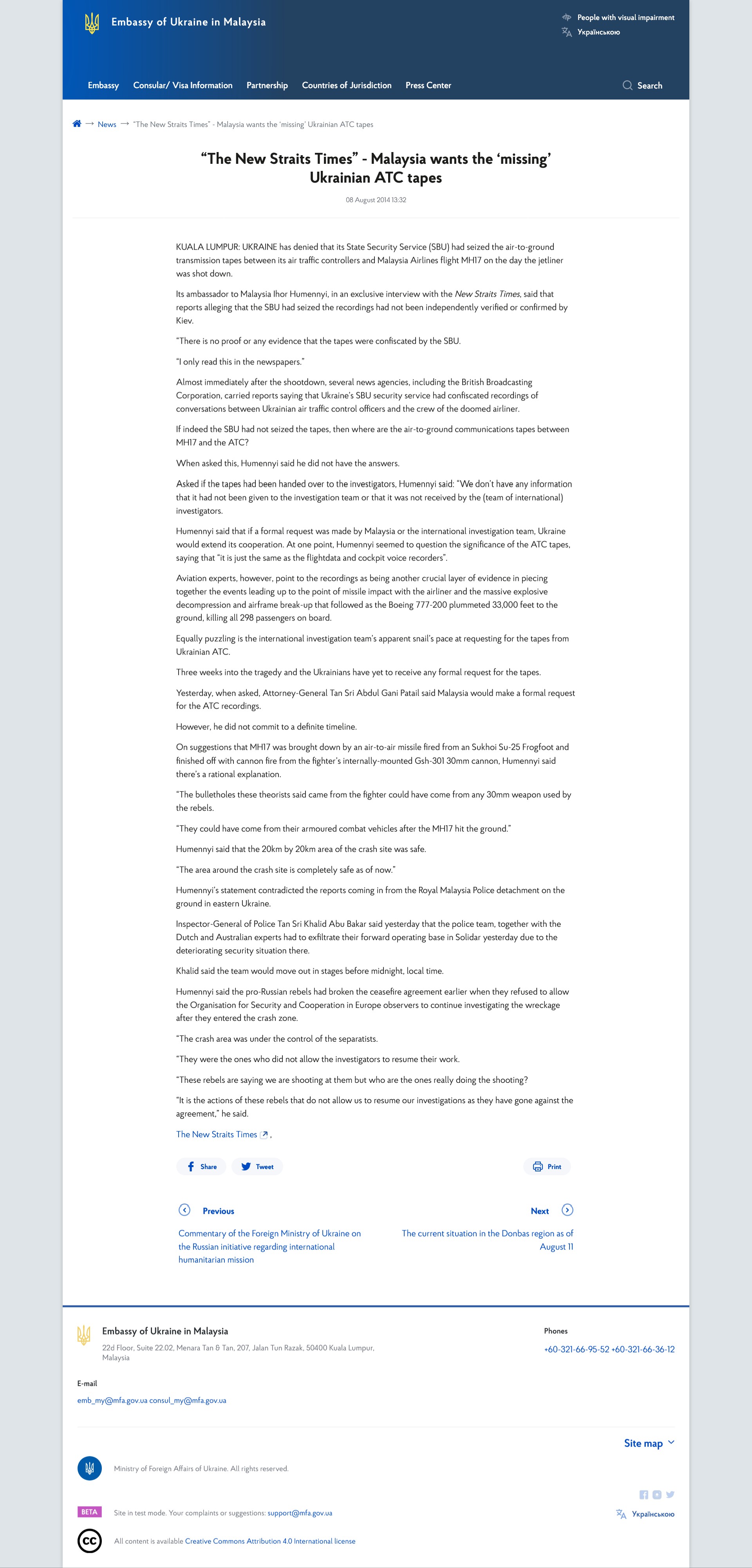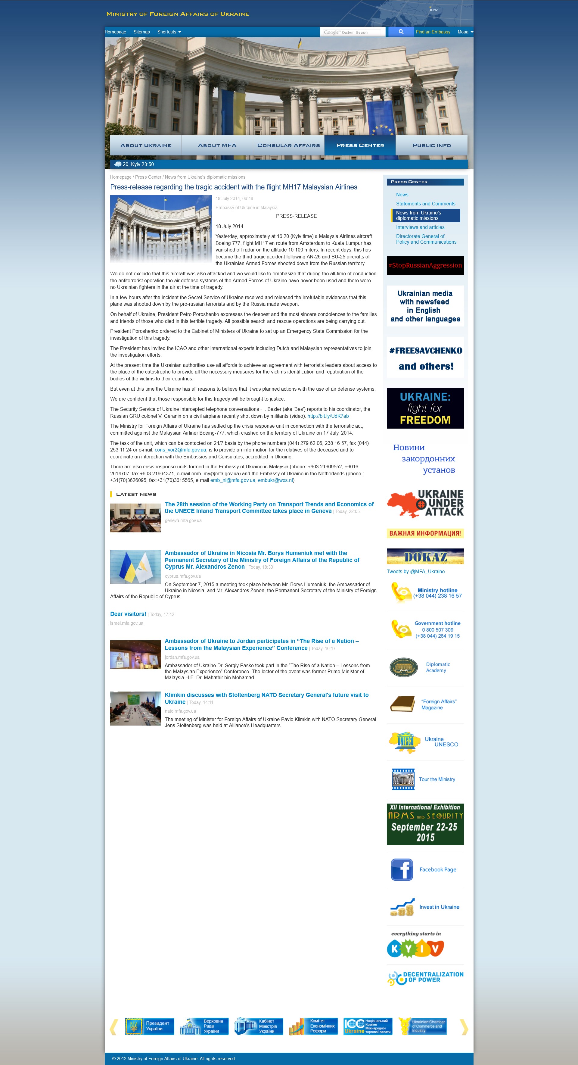The official press release on 18 July of the Ministry of Foreign Affairs of Ukraine stated...