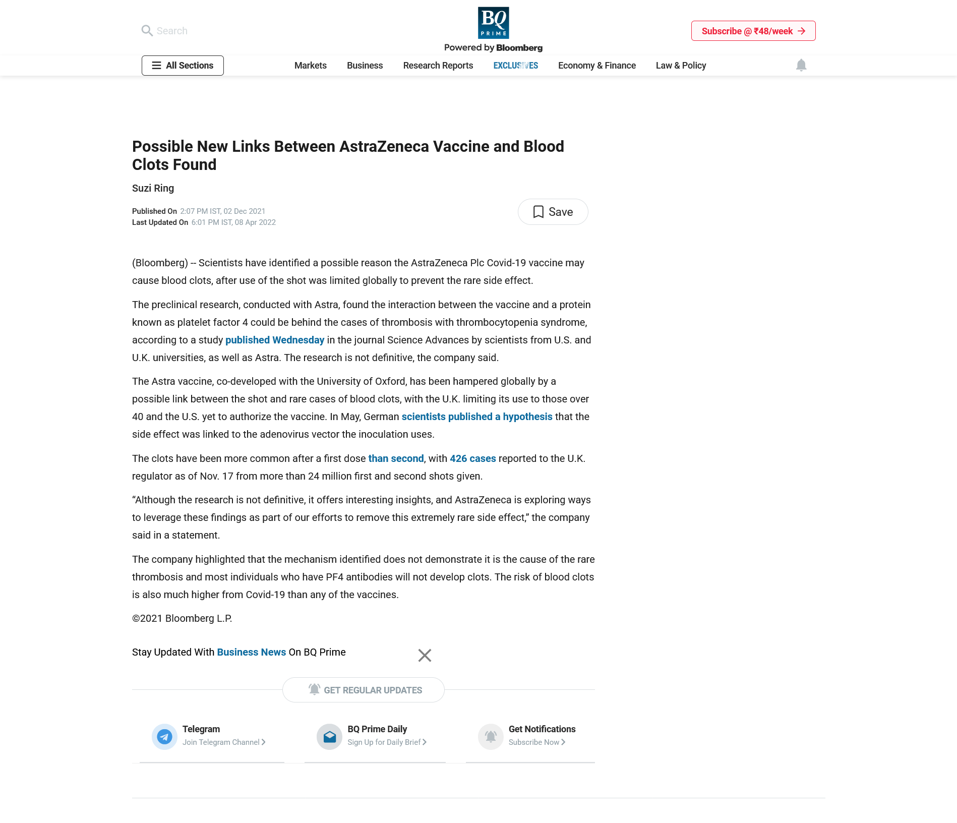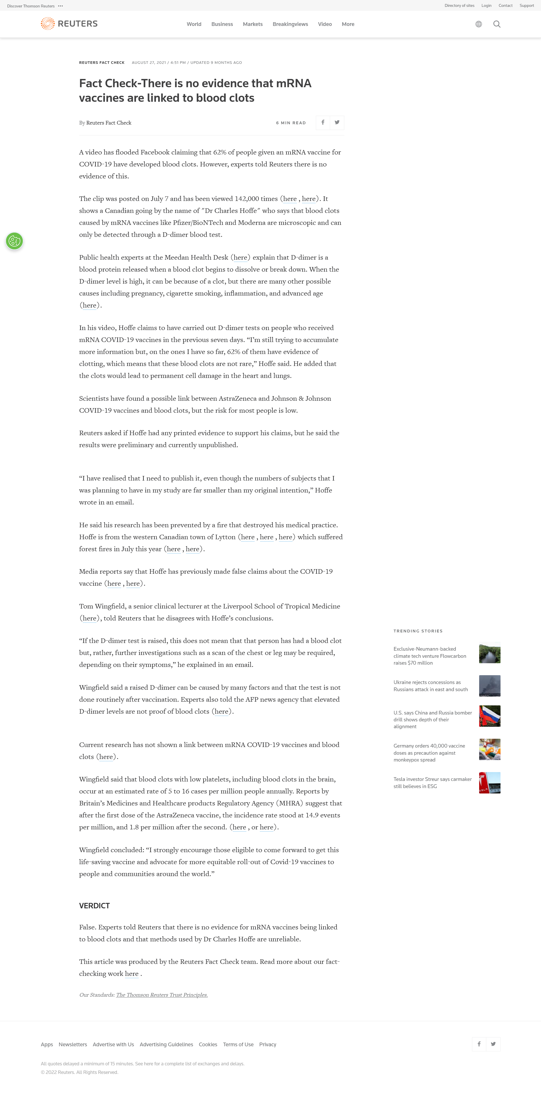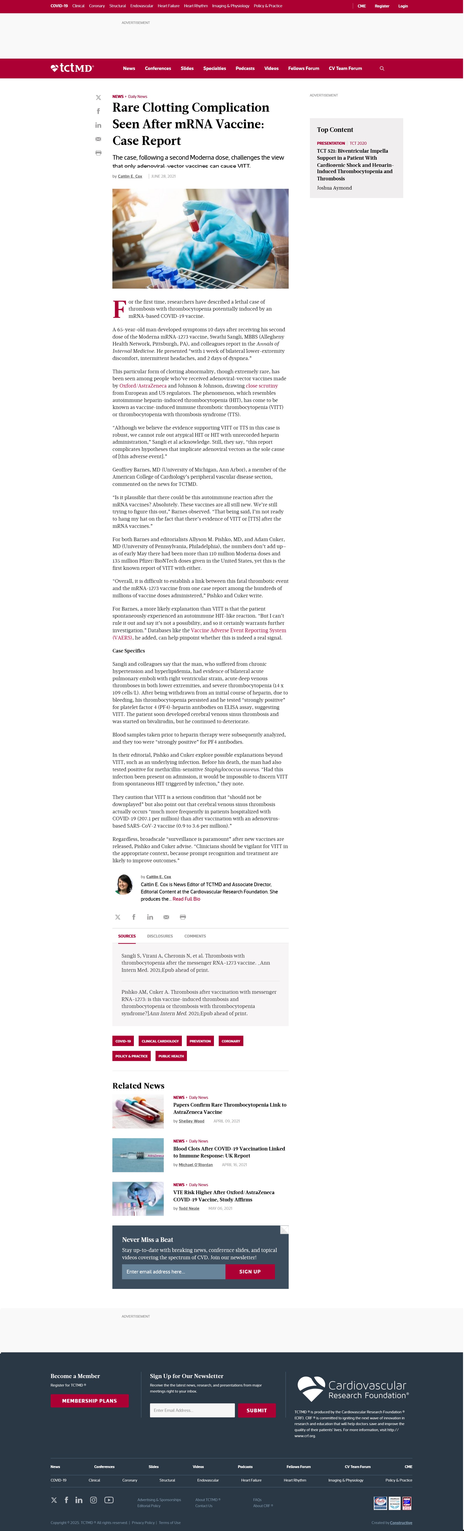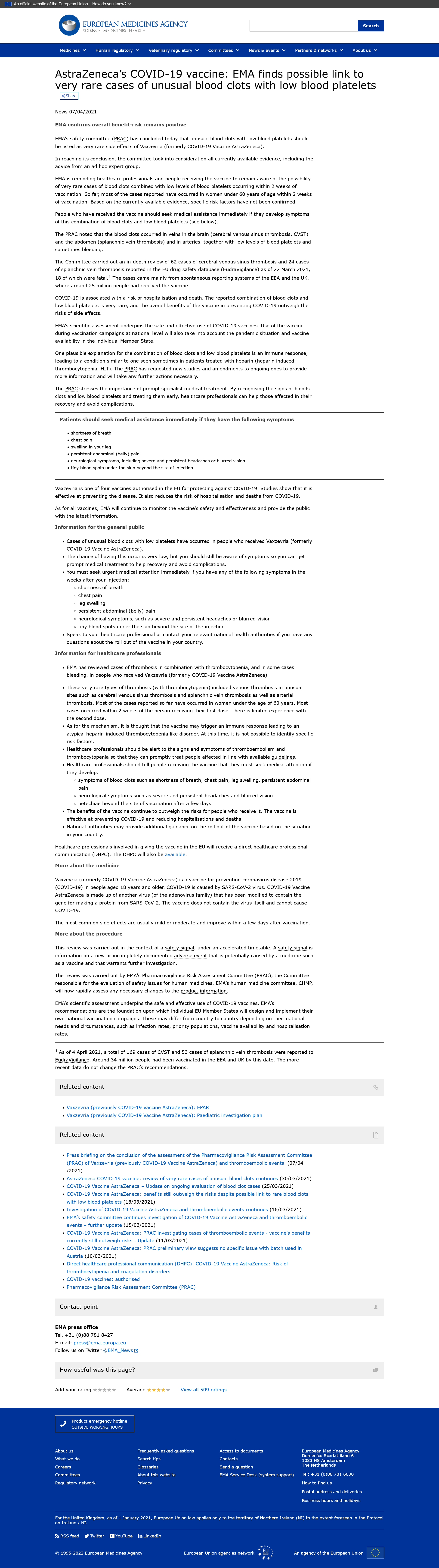 The related adverse event is called vaccine-induced immune thrombotic thrombocytopenia, or VITT. Despite these findings the "fact-checkers" of the power elite stated in August 2021 thatthere is no evidence that mRNA vaccines are linked to blood clots** while later in December 2021 scientists stated about this matter thatresearch is not definitive** and several studies already showed the link. In April 2021 health alerts were issued even by for example CDC* and EMA* in which they downplay the occurrence stating that it is extremely "rare"* and there's nothing to worry about. The power elite and their media say thatpatients should be reassured that the benefits of vaccination against COVID-19 far outweigh any potential risk** while healthy people have nothing to fear from a flu like Covid. See COVID-1984.