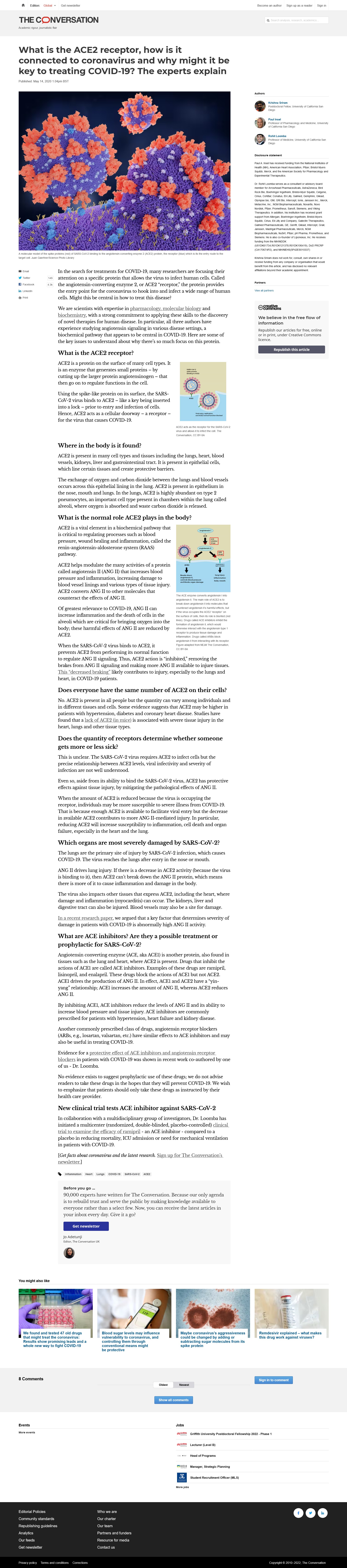 ACE2 is protective in the cardiovascular system, and SARS-CoV-1 S protein promotes lung injury by decreasing the level of ACE2 in the infected lungs. ... S protein alone can damage vascular endothelial cells (ECs) by downregulating ACE2 and consequently inhibiting mitochondrial function.