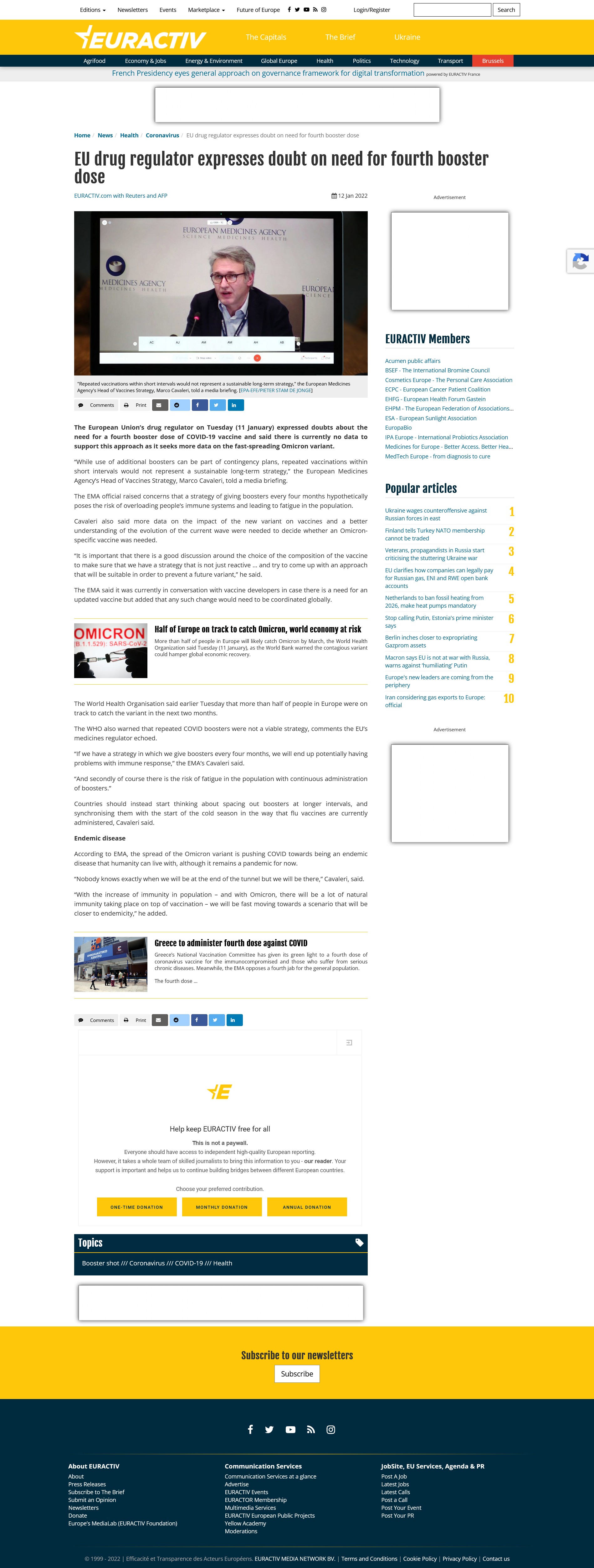 This is why European Medicines Agency's Head of Vaccines Strategy, Marco Cavaleri, said in January 2022:If we have a strategy in which we give boosters every four months, we will end up potentially having problems with immune response.** At the Good Morning America show in May 2022 Jennifer Ashton stated:if you already have high antibody levels and you get another booster that your immune system can start to say, well, 'what am I needed for?' and can kind of start to shut down.**