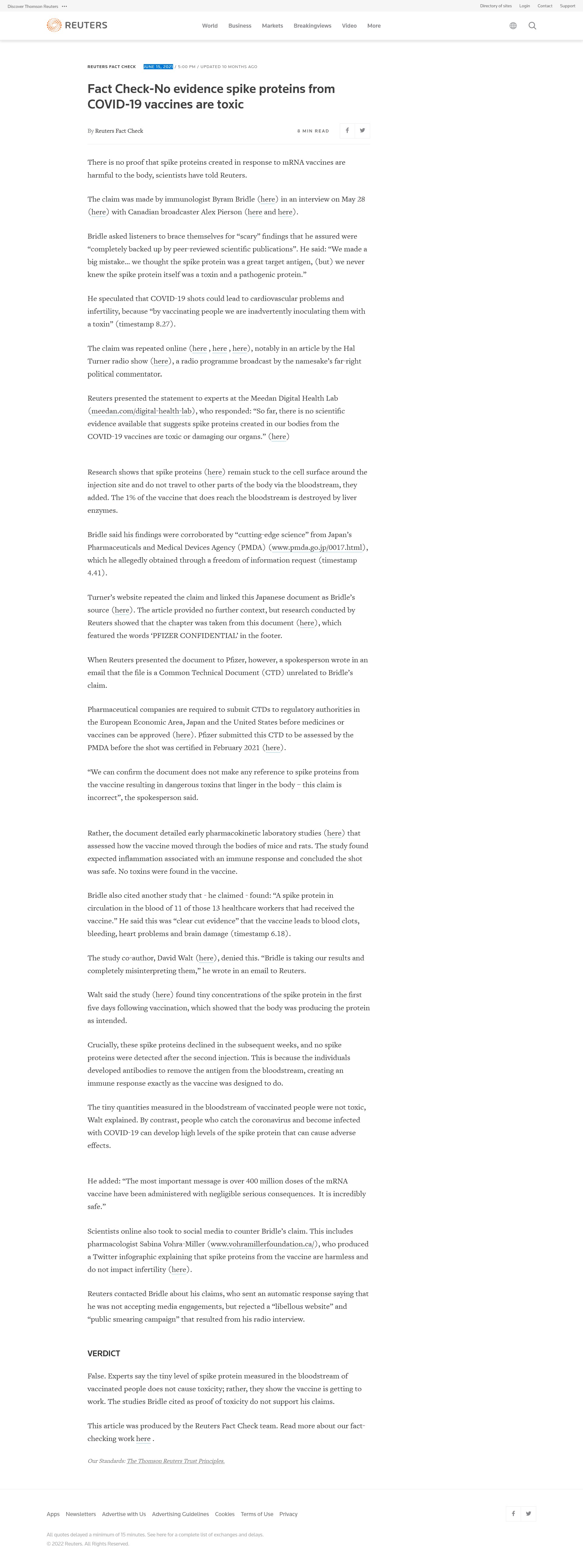 In May 2021 the spike proteins produced by the mRNA vaccines were found in the blood of vaccinated people...