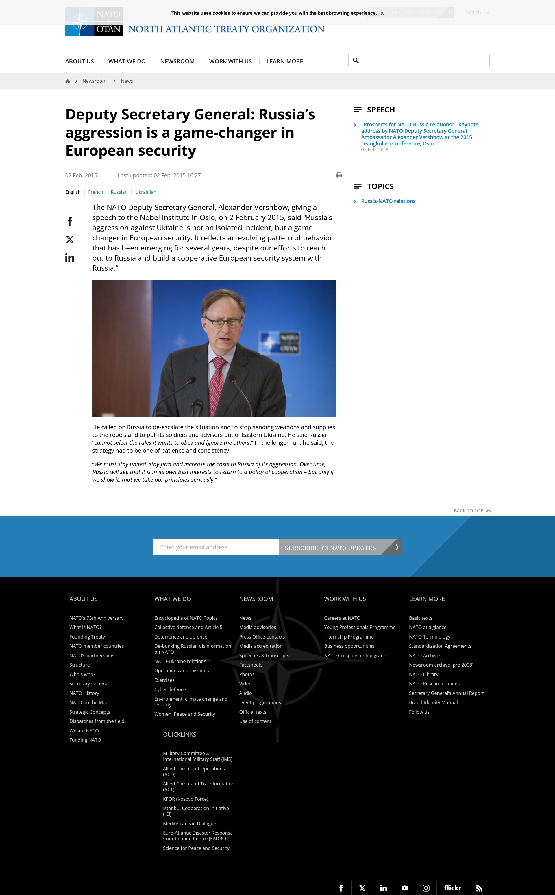 Russia and China have all right to protect their own borders and interests from aggressive Anglo-American imperialism. But instead Western leaders put up a great show of hypocrisy surrounding for example the events in Ukraine. In March 2014 Barack Obama had harsh words for Russia and its president, Vladimir Putin, who he said is refusing to cooperate to create peace in Ukraine. NATO's Alexander Vershbow said in 2015 thatRussia's aggression against Ukraine is not an isolated incident, but a game-changer in European security. It reflects an evolving pattern of behavior that has been emerging for several years, despite our efforts to reach out to Russia and build a cooperative European security system with Russia.**