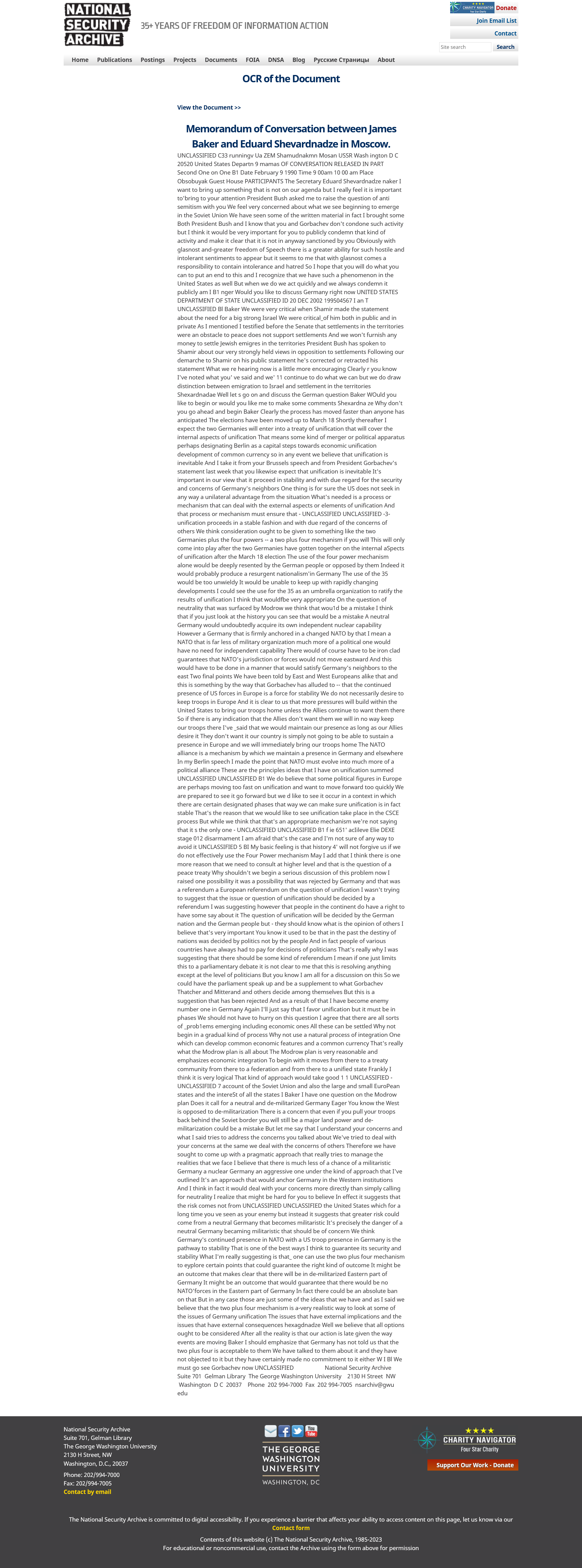 Memorandum of Conversation between James Baker and Eduard Shevardnadze in Moscow (February 9, 1990)