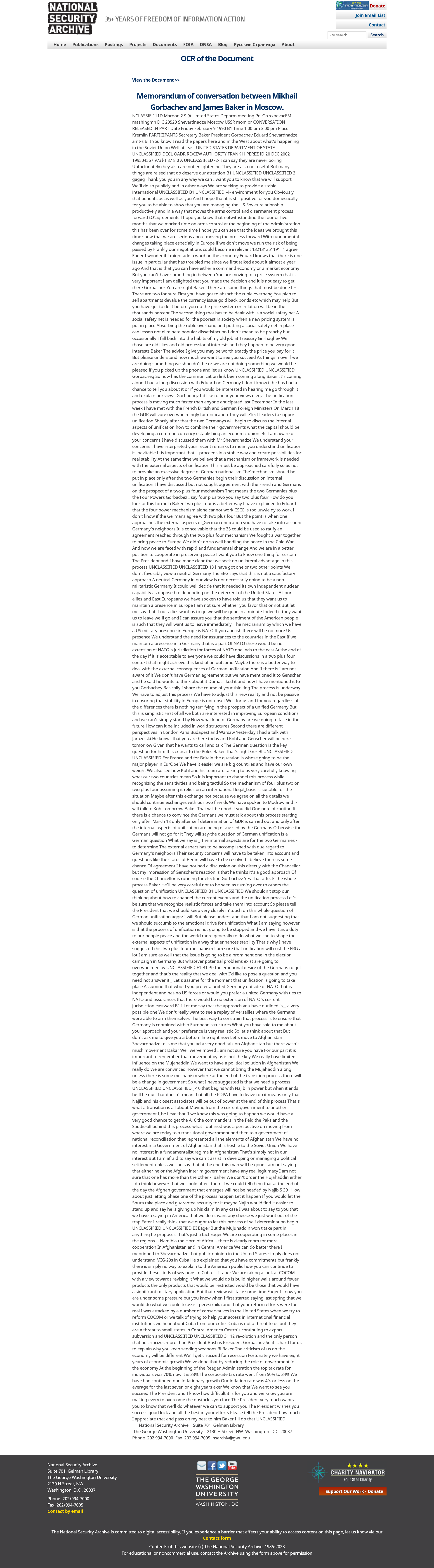 Memorandum of conversation between Mikhail Gorbachev and James Baker in Moscow (February 9, 1990)