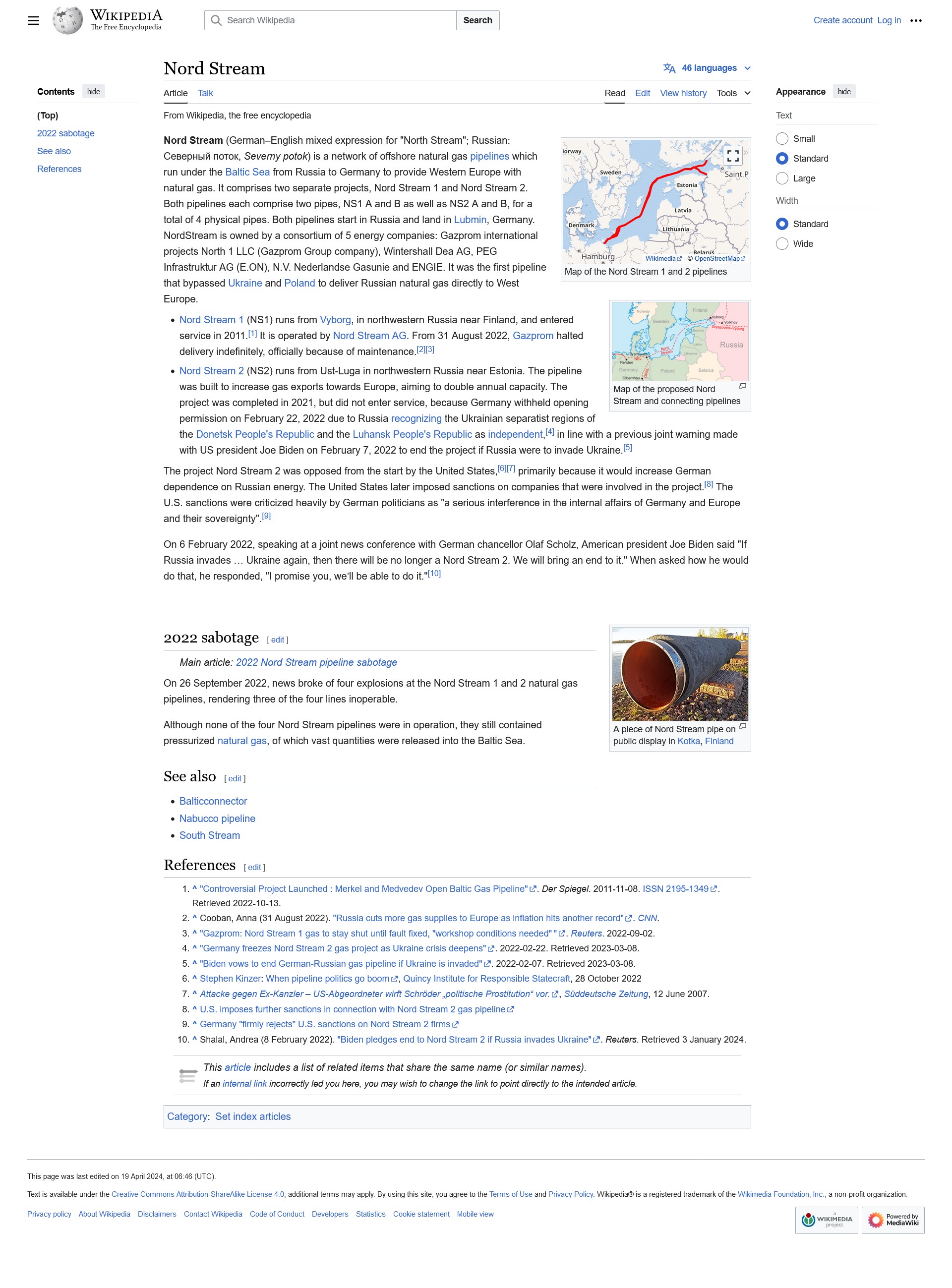 Nord Stream is a network of offshore natural gas pipelines which run under the Baltic Sea from Russia to Germany to provide Western Europe with natural gas. ... It was the first pipeline that bypassed Ukraine and Poland to deliver Russian natural gas directly to West Europe. ... The project Nord Stream 2 was opposed from the start by the United States, primarily because it would increase German dependence on Russian energy.*
