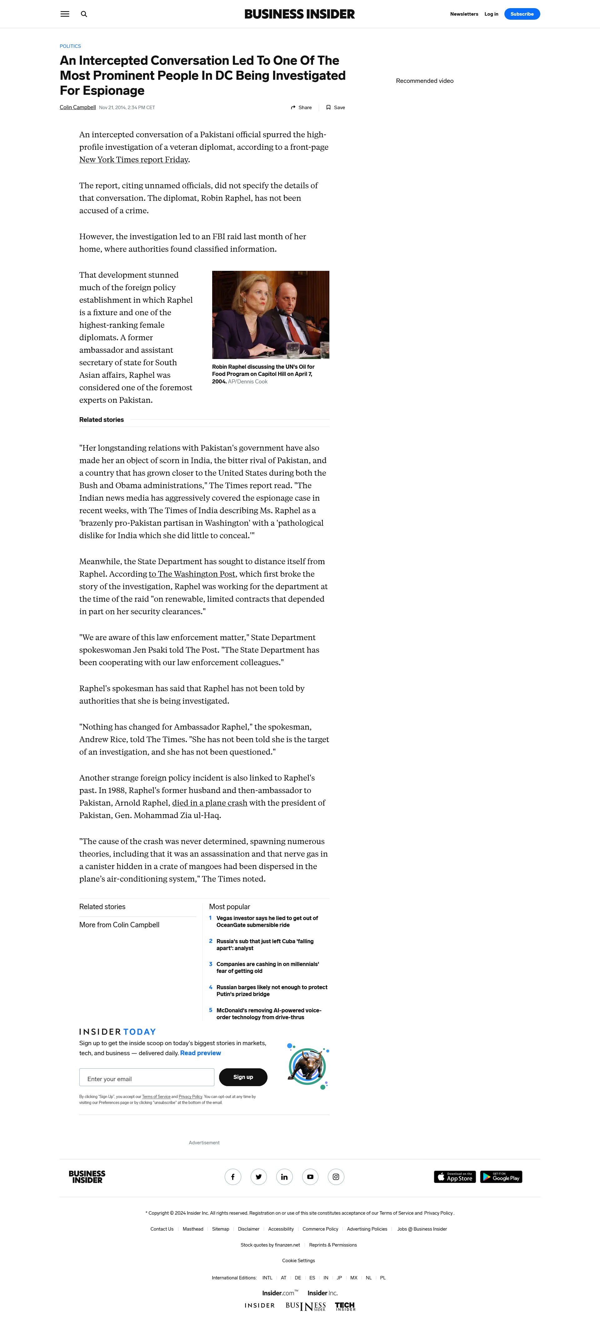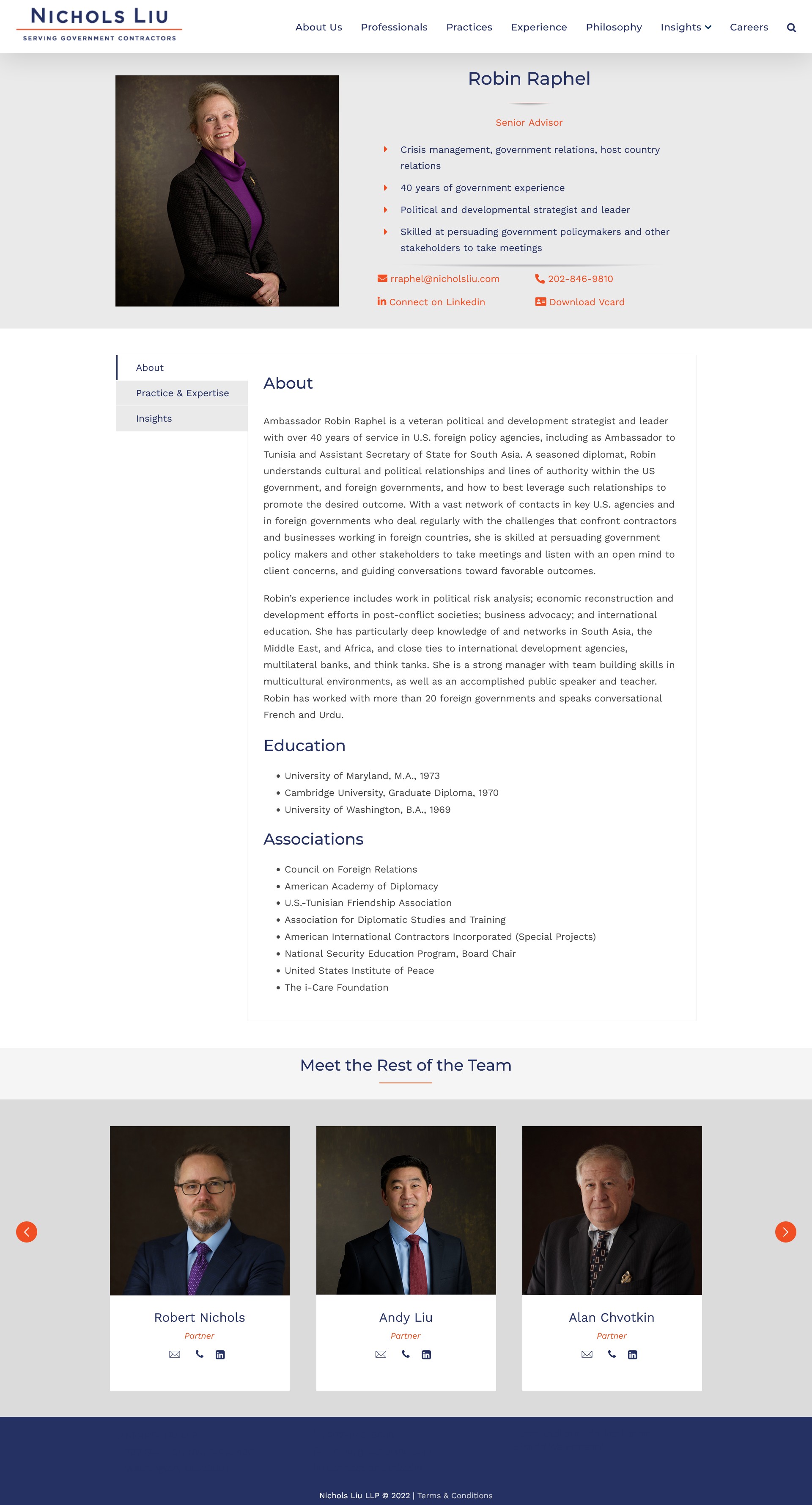 Robin Raphel is linked to propaganda firms like Cassidy & Associates and USAID which heavily promote US interests in the world. At the time of writing she worked for Nichols Liu*, a multidisciplinary government contracts law firm. In 2014 she was investigated for espionage*.