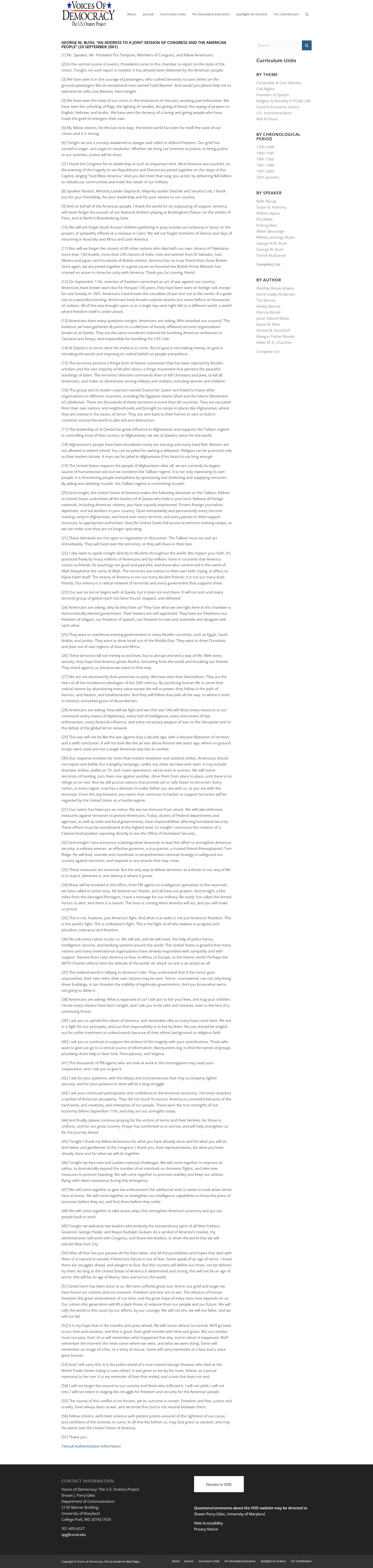 George W. Bush - Address to the Joint Session of the 107th Congress (Sept. 20, 2001)