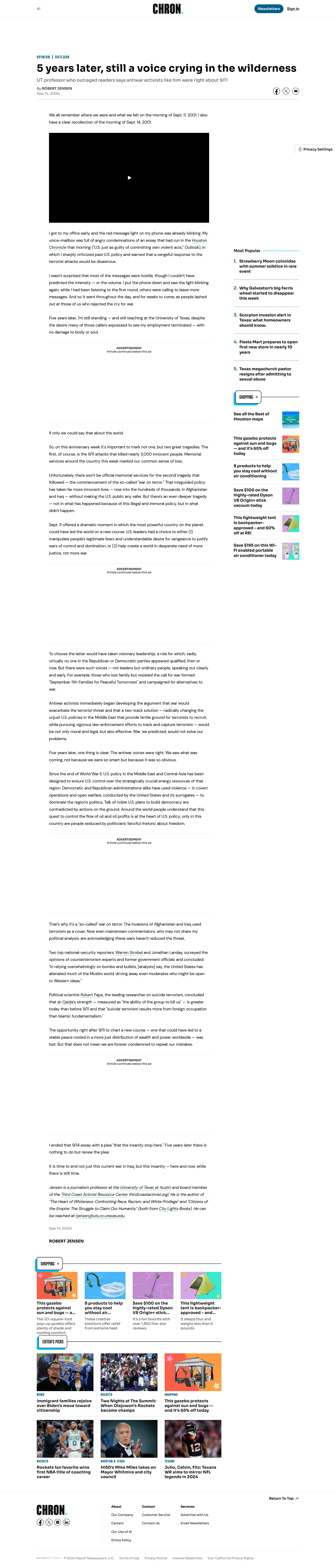 Robert Jensen:The war on terror ... has taken far more innocent lives ... without making the U.S. public any safer.**