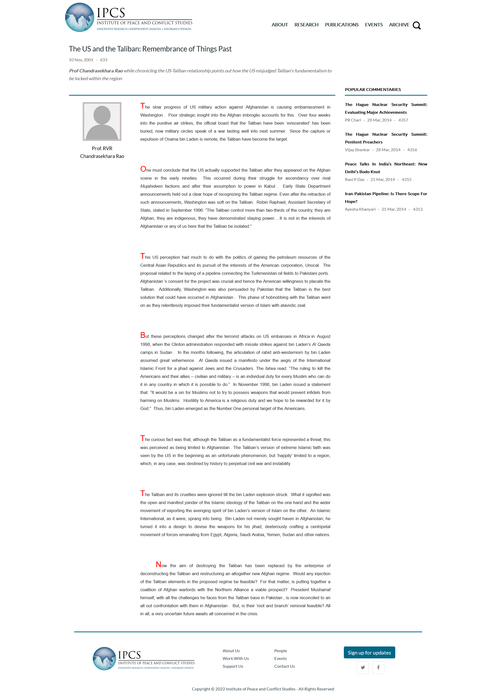 Then Assistant Secretary of State Robin Raphel stated in September 1996:The Taliban control more than two-thirds of the country, they are Afghan, they are indigenous, they have demonstrated staying power... It is not in the interests of Afghanistan or any of us here that the Taliban be isolated.**