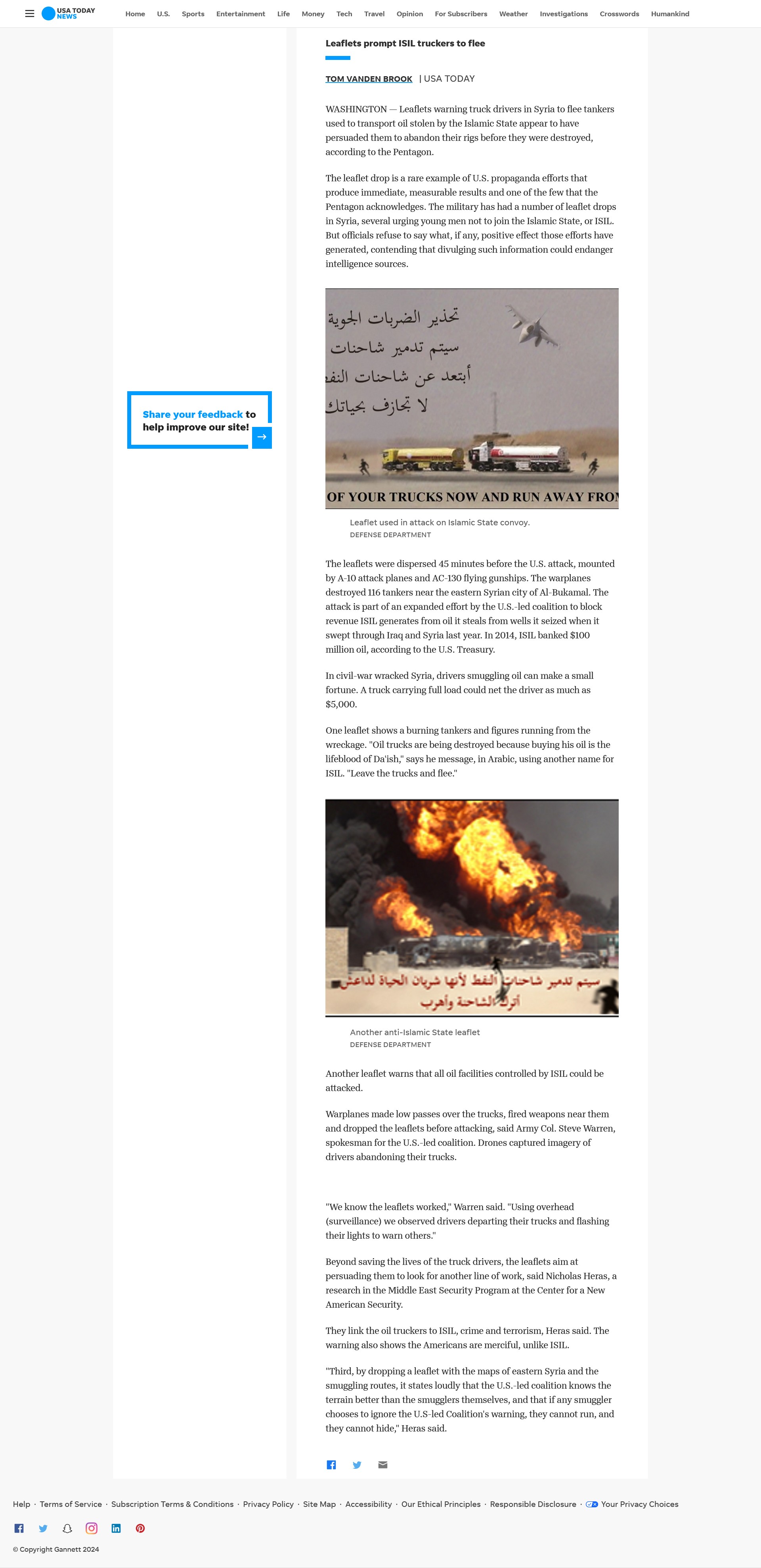 Interesting to note is that Islamic State didn't attack its "archenemy" Israel when it had the chance.* And even after it accidentally did attack an Israel Defense Forces unit why did ISIS apologise to Israel?* And why did US intelligence warn ISIL terrorists before destroying their oil trucks?* And why was ISIS armed with so many US weapons?* The answers are of course obvious.