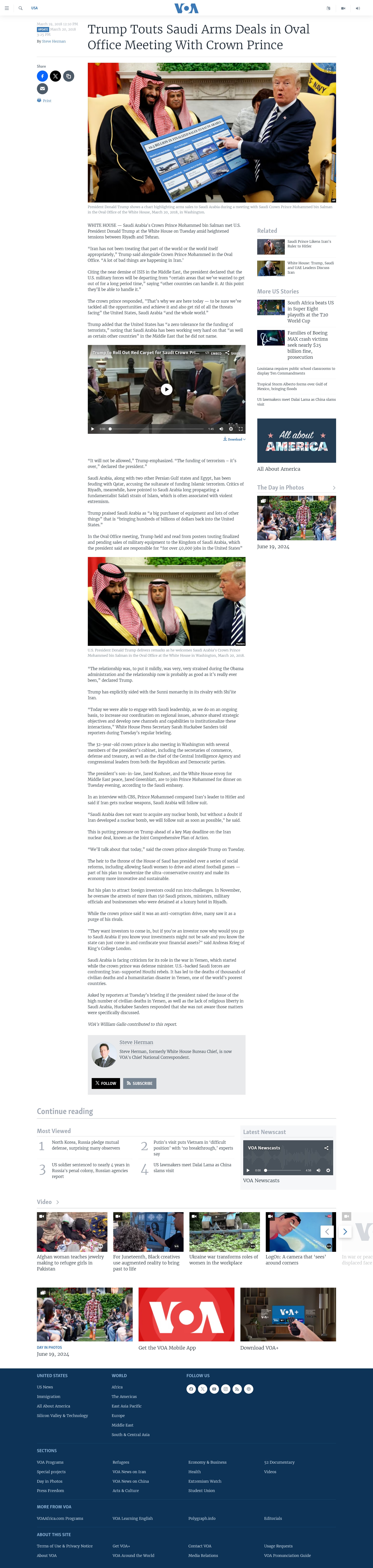 William Gallo, Steve Herman - Trump Touts Saudi Arms Deals in Oval Office Meeting With Crown Prince