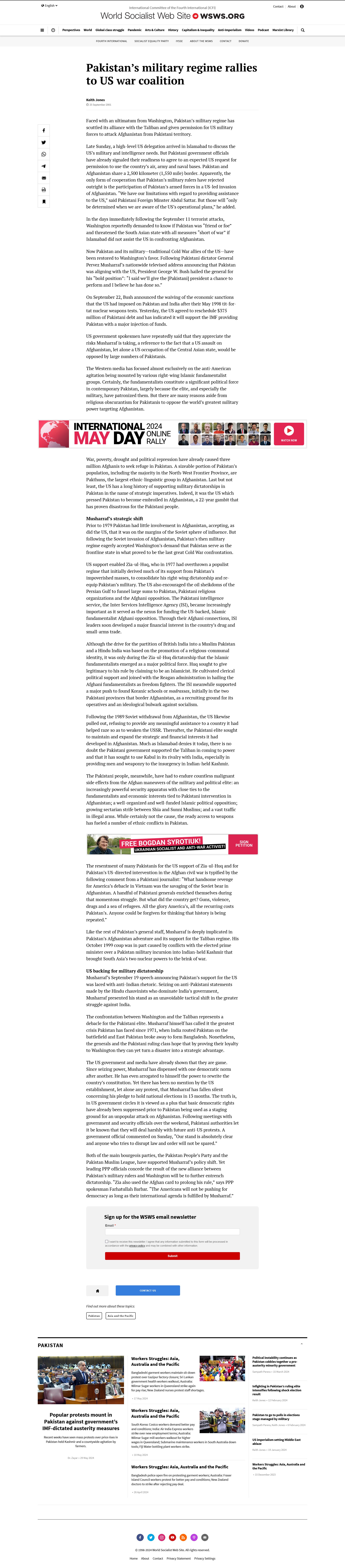 Keith Jones - Pakistan's military regime rallies to US war coalition