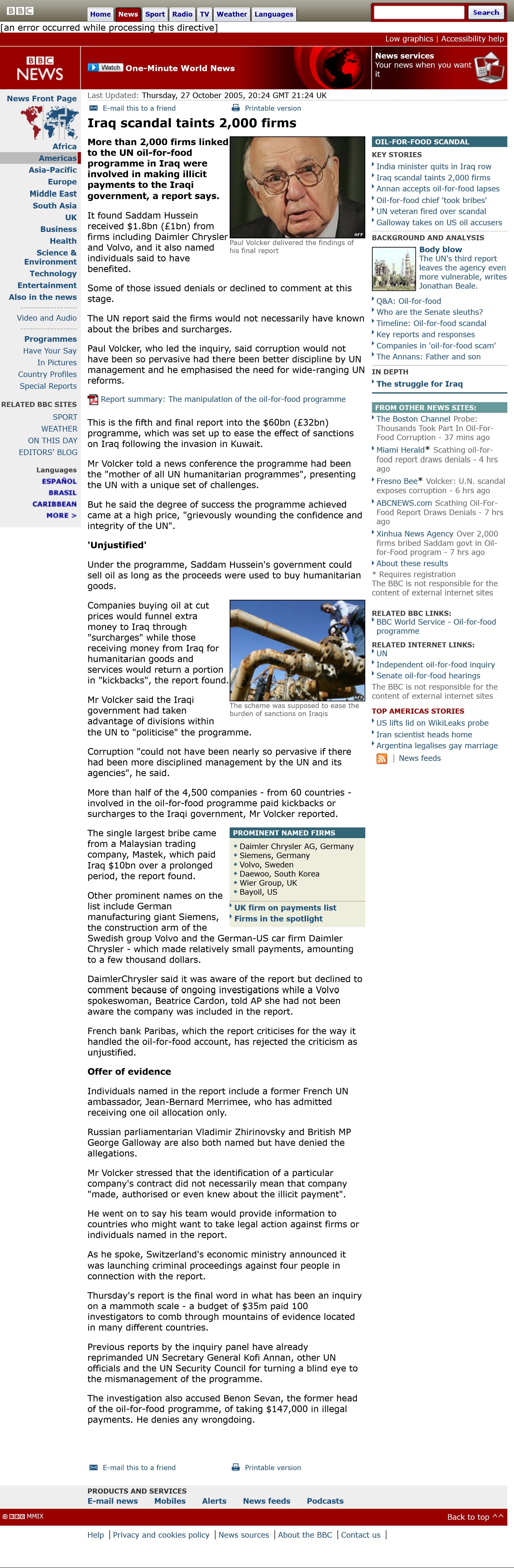 According to the BBC more than 2,000 firms linked to the UN oil-for-food programme in Iraq were involved.* The western banking cartel was also involved because such level of corruption needs a financial backbone to be possible in the first place.