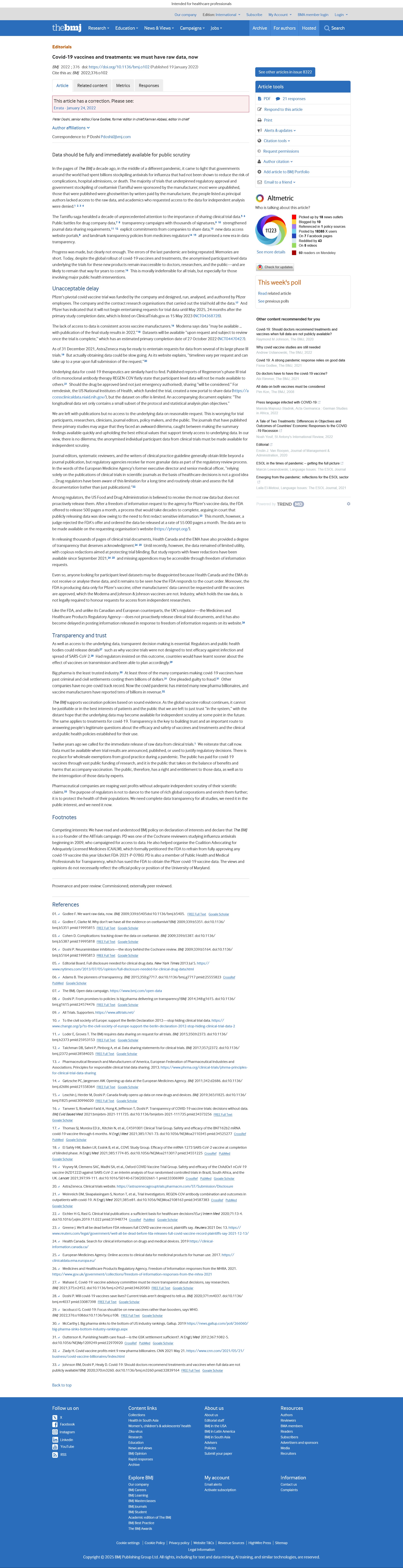 Peter Doshi, Fiona Godlee, Kamran Abbasi - Covid-19 vaccines and treatments: we must have raw data, now